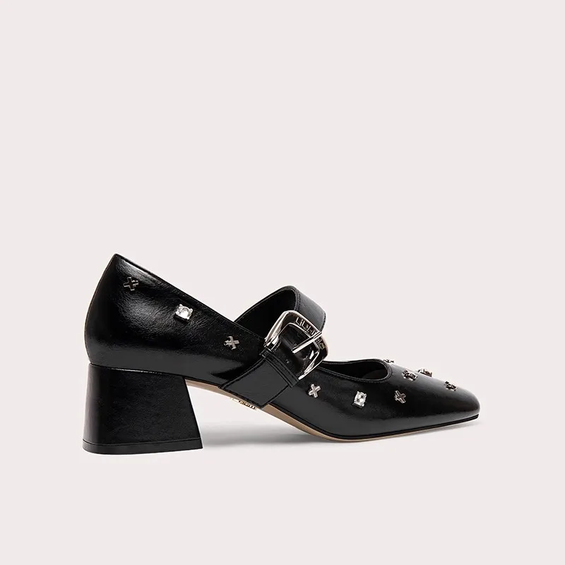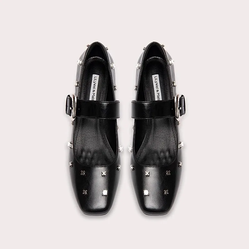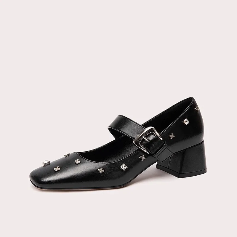 Fashionable Square Toe Mary Jane Pumps with Metal Studs Women's Block Heel Dress Shoes