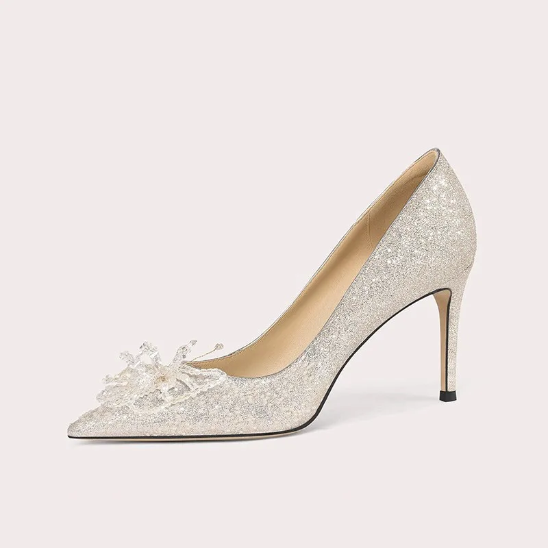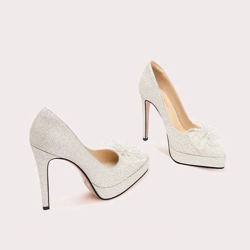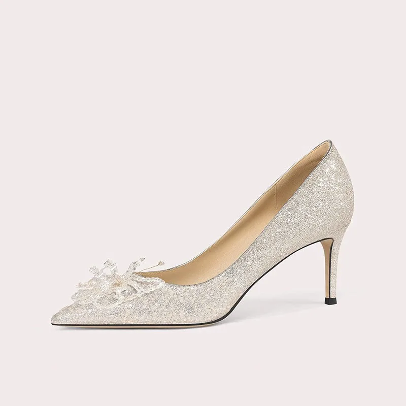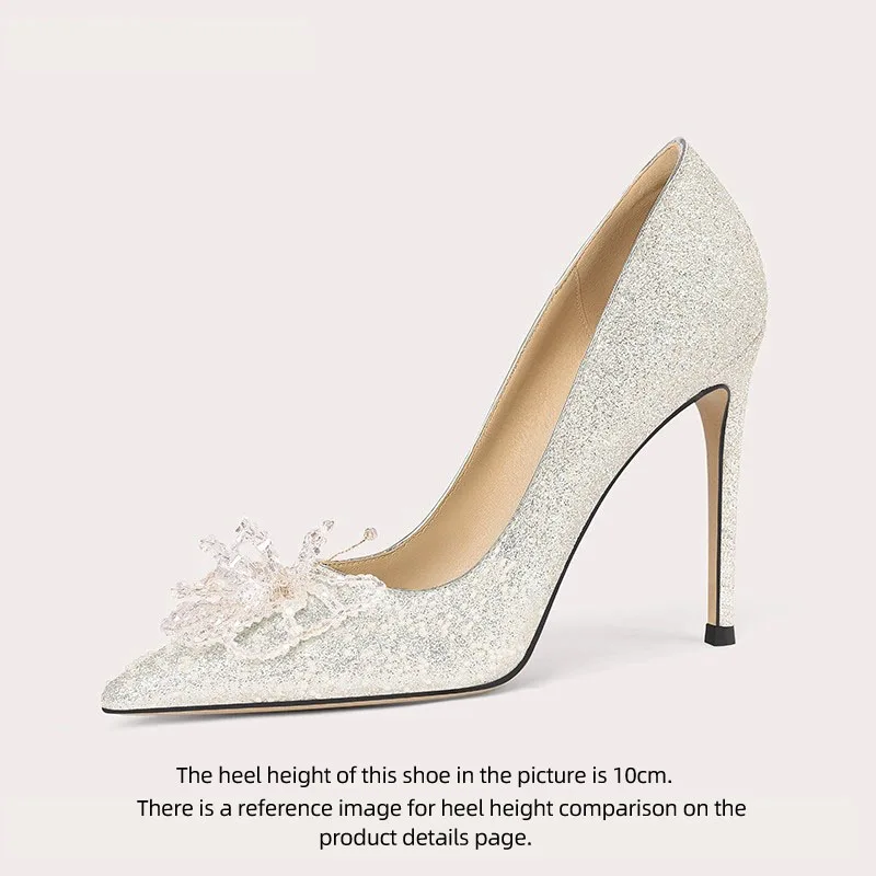 Luxury Shiny Gold High-heeled Women's Shoes Pointed Toe Designer Heels Ladies Sexy Bridal Wedding Gowns Shoe