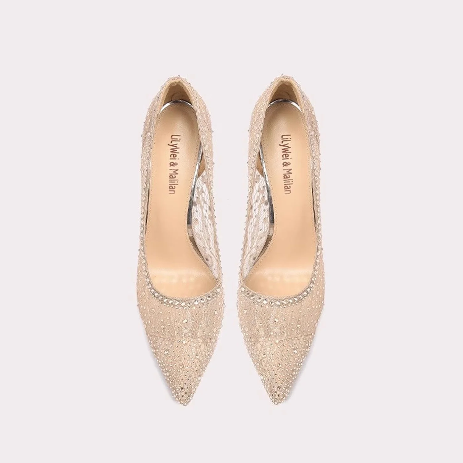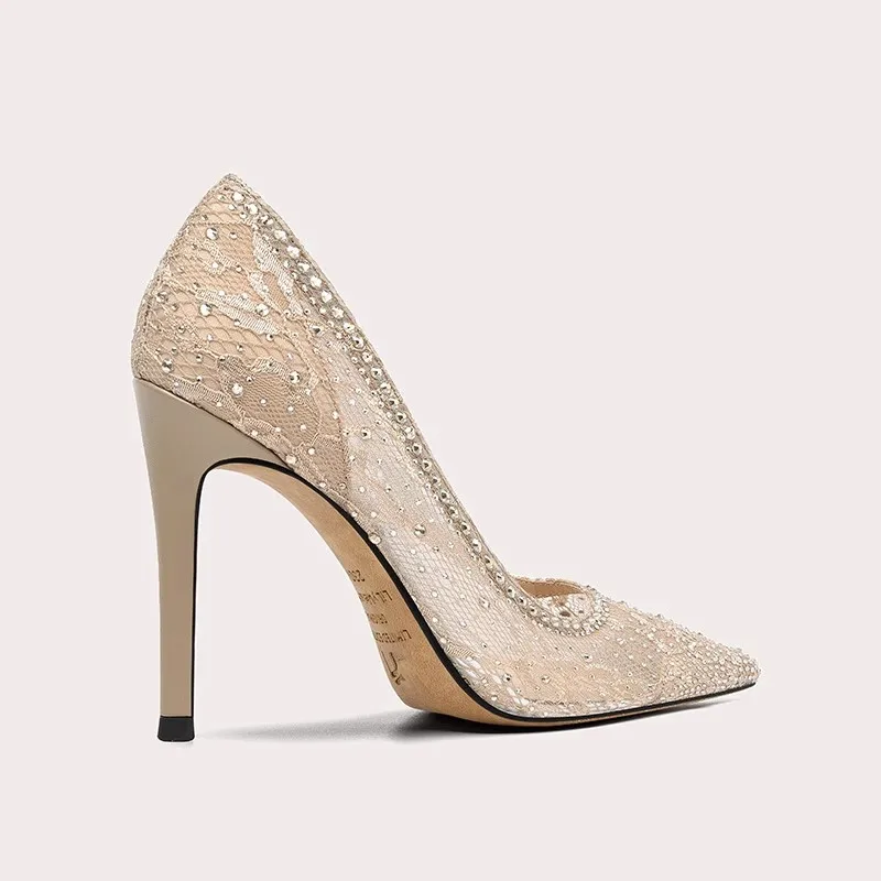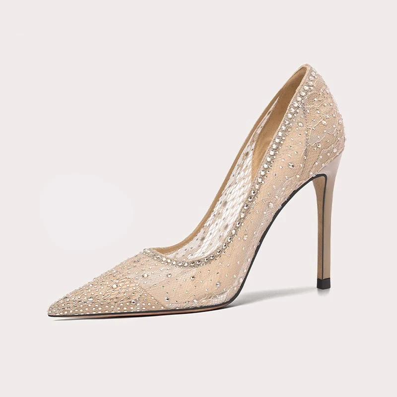 Women's Fashionable Summer Lace Plush Breathable Design Stiletto Heel Pointed Toe Trendy Styles Sold Directly Source Factory
