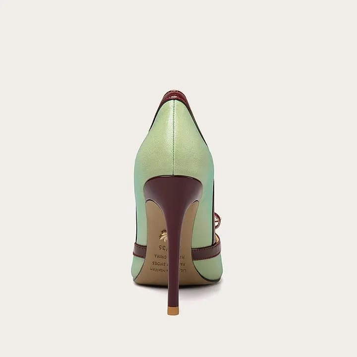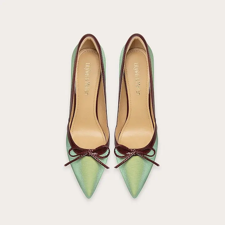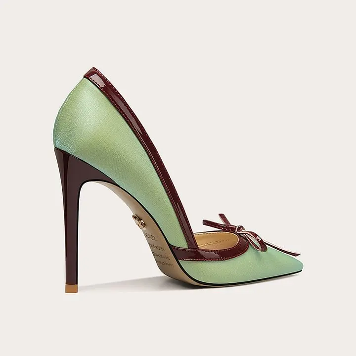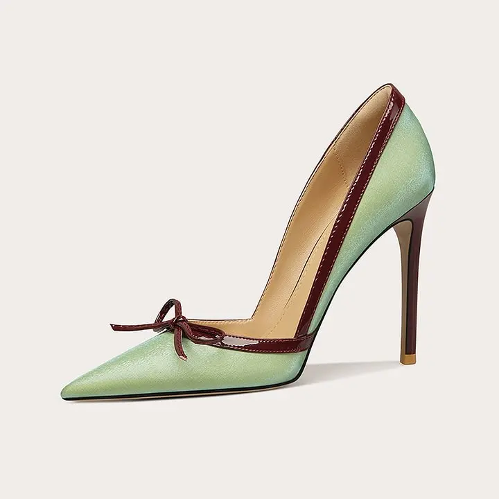Women's Casual Elegant Comfortable Green Pumps Pointed Toe High Heels Slip-On Closure TPR Outsole Lining