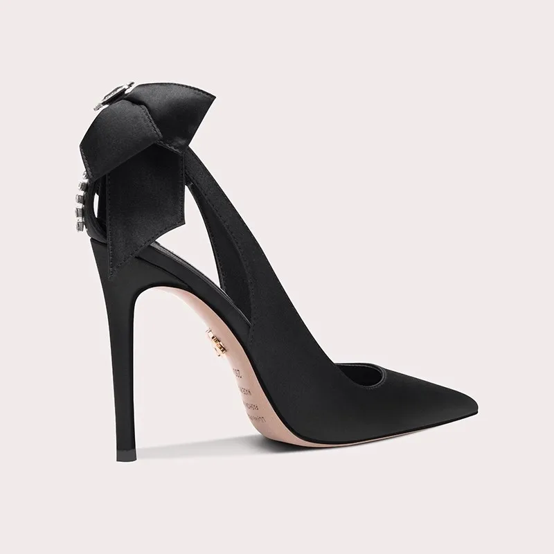 Satin High Heels Sandals up to Shoe Size 44 Women Thin Heel with Rhinestone Decoration for Summer