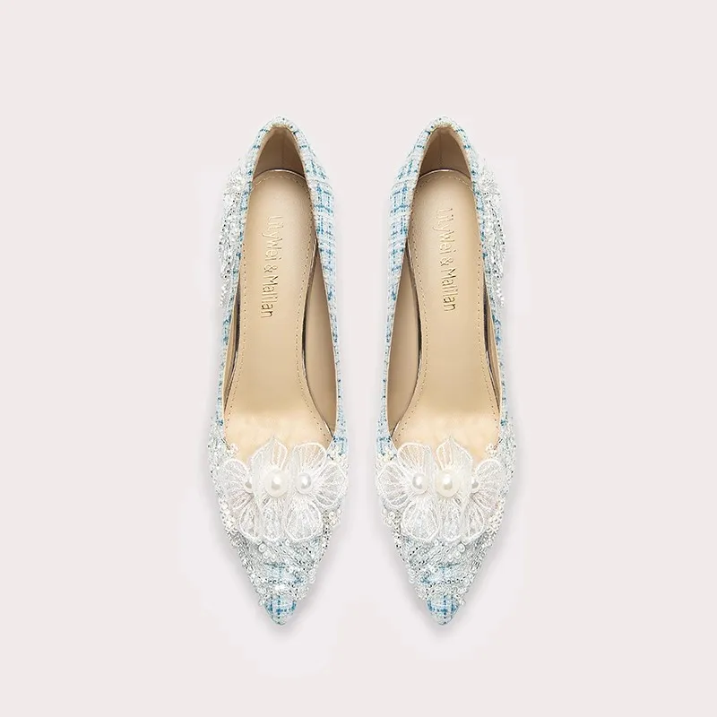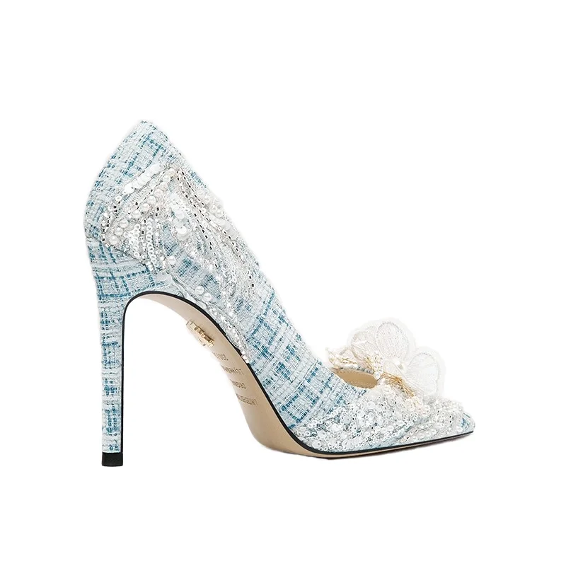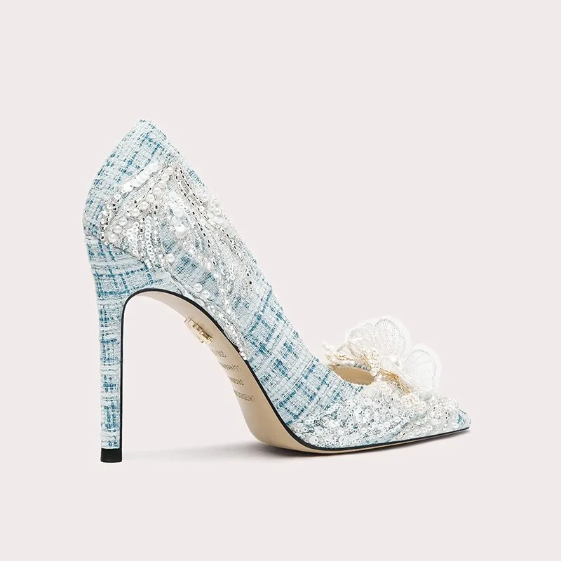 High Quality Crystal Bridal Wedding Shoes with Stiletto Thin Heel Pearl Rhinestone Decor Slip-On Closure-for All Seasons