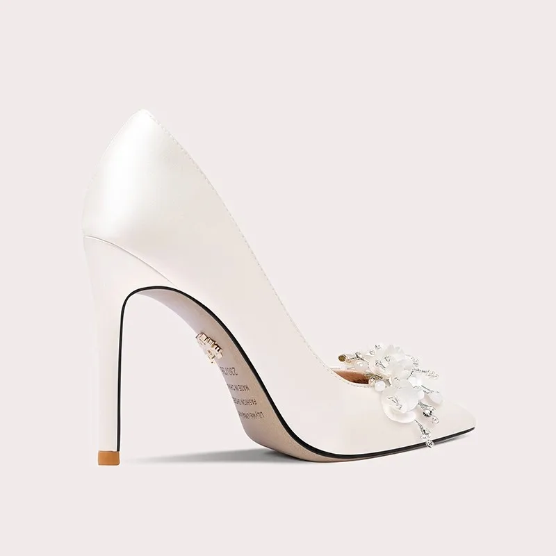 Bridal Shoes with Thin Heels Rhinestone Decoration French Style Main Wedding Dress Shoes Small Size Women's Shoes
