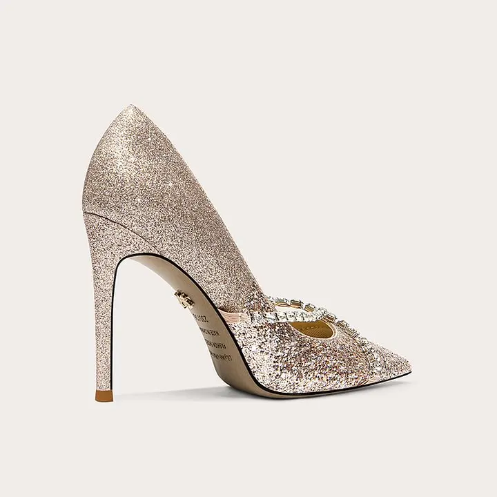 Luxury Women's Gold Dress Shoes Thin Heel Bridal Sandals Rhinestone Decoration Slip-On Height Increasing for Spring Summer