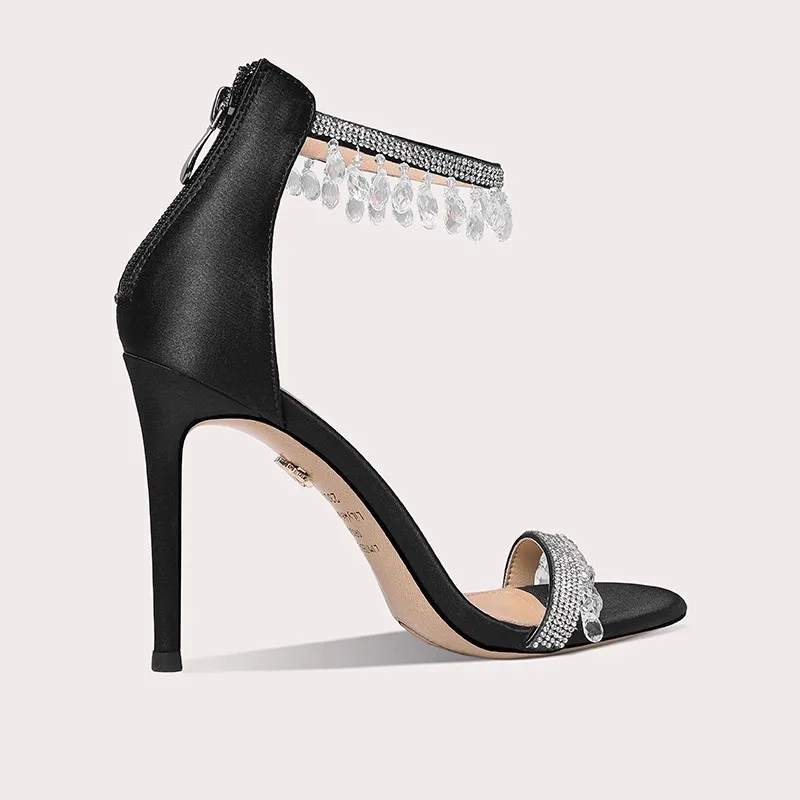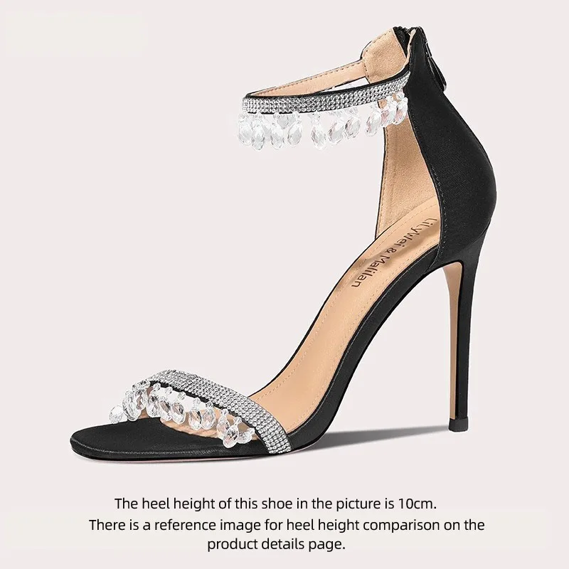 Lilywei High Quality French-style High-end Black Square-toe Sandals Party Sandals Ladies' Multi-Strap Open-toe Pearl Heel Sandal