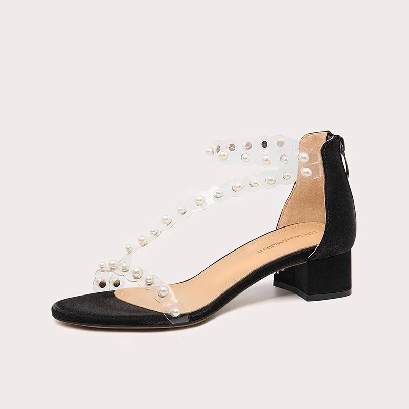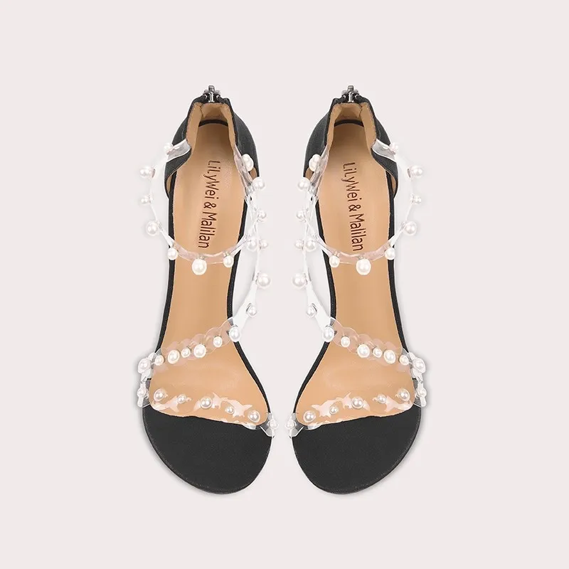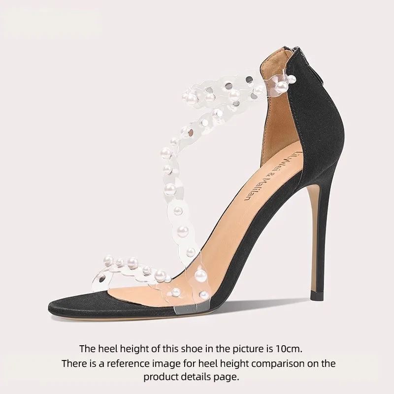 Lilywei High Quality Fashion Sandals High Spool Heels Party Sandals Ladies' Multi-Strap Open-toe Pearl Sandals for Women