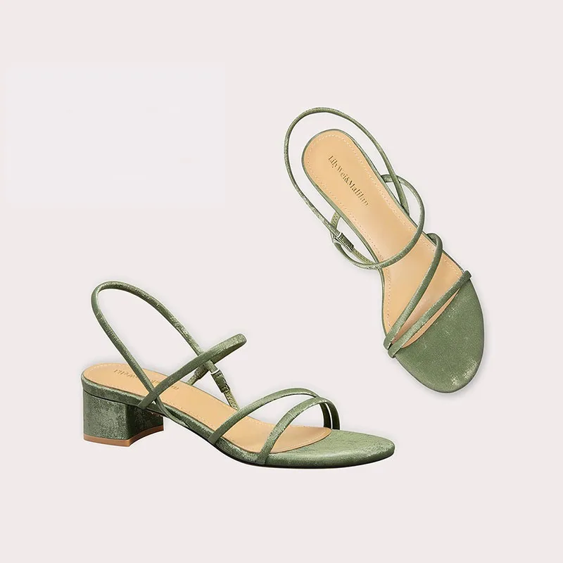 Summer Latest Green Open-toe Sandals Women's Shoes Sandal Comfortable Thin Belt Mid Chunky Heel Lady Sandals
