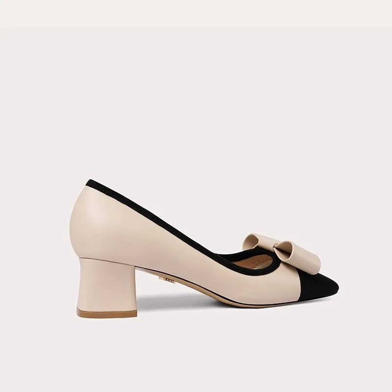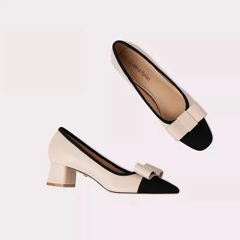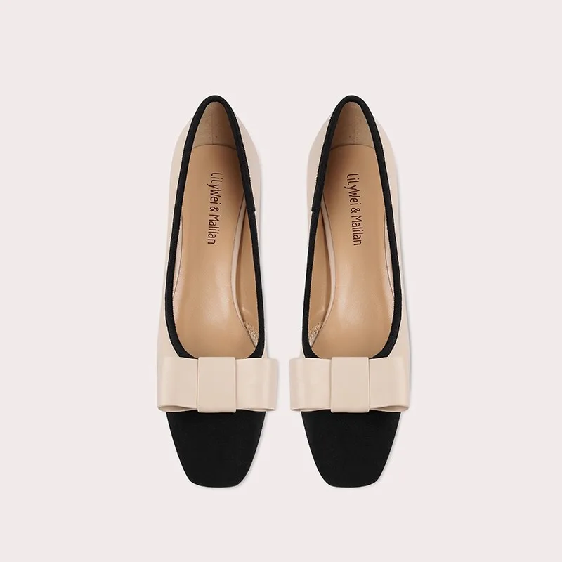 Fashion Coarse-textured Ankle Boots Square Heel Women Square Toe Pumps Elegant Flat Leather Dress Shoes with Bow for Daily Life