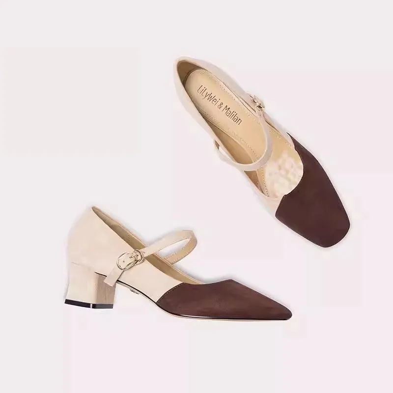 Custom Women's High Heel Pumps One-Word Buckle Square Toe Design Comfortable Shoes One-piece Pair of Versatile High Heels