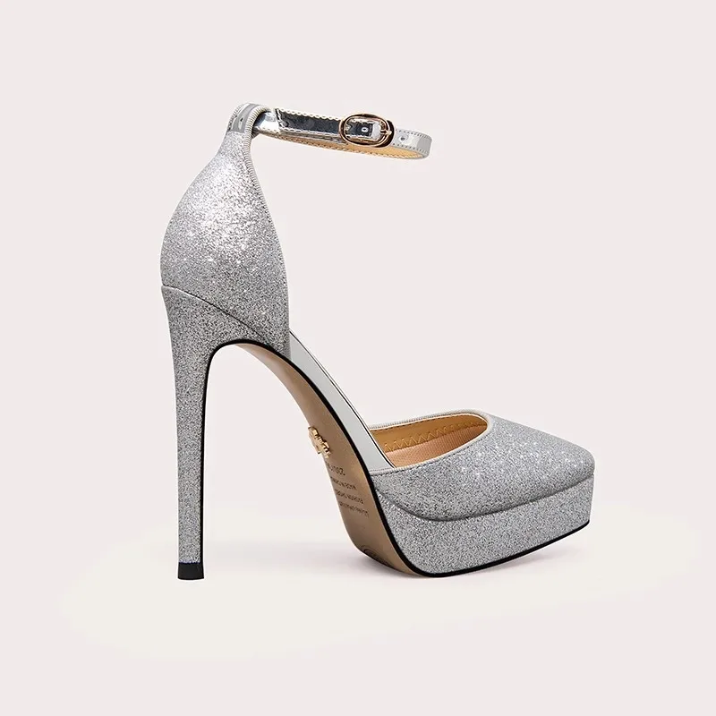 Wholesale of New Solid Color Women's Sandals Glitter High Heels Fashionable Banquet Sexy Slim Heeled Shoes for Women