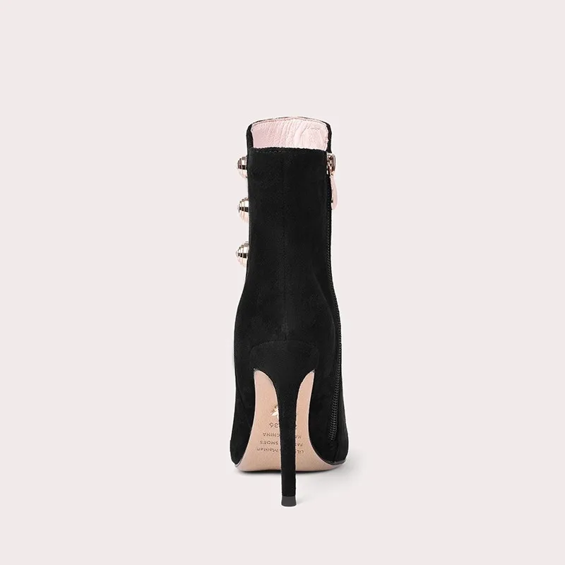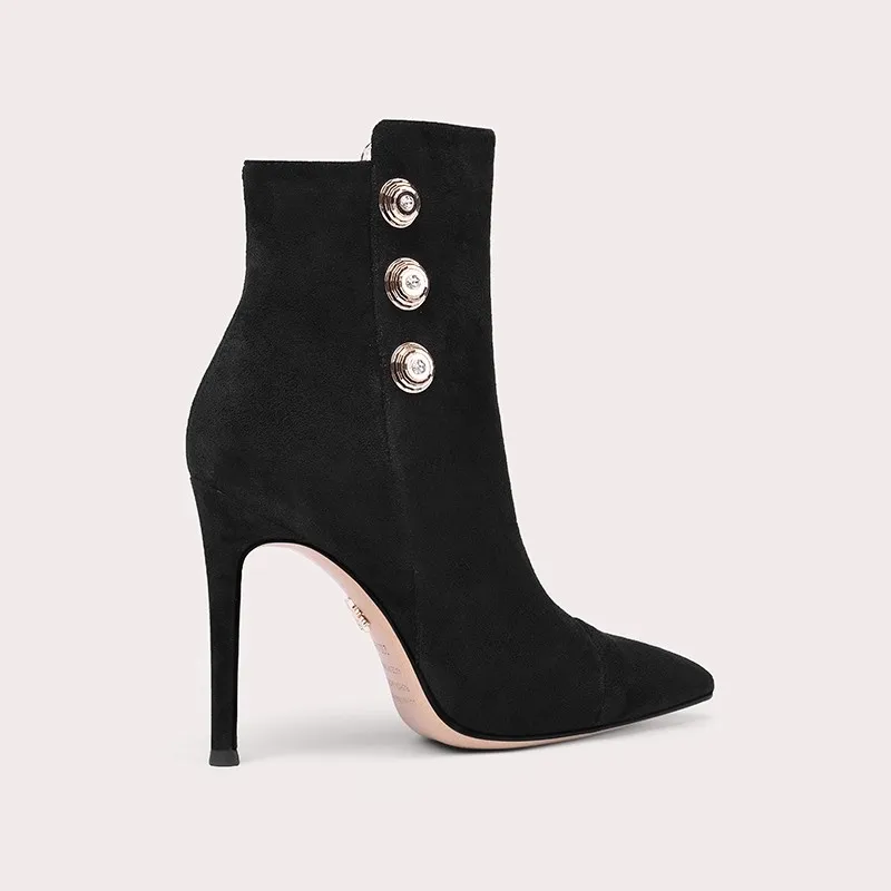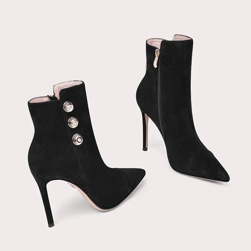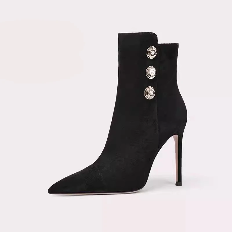 Women's High-Heeled Stiletto Shoes Solid Sexy Side Zipper Mid-calf Boots with Pointy Toe Wide Fit Short Booty