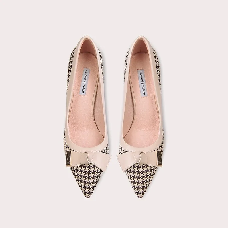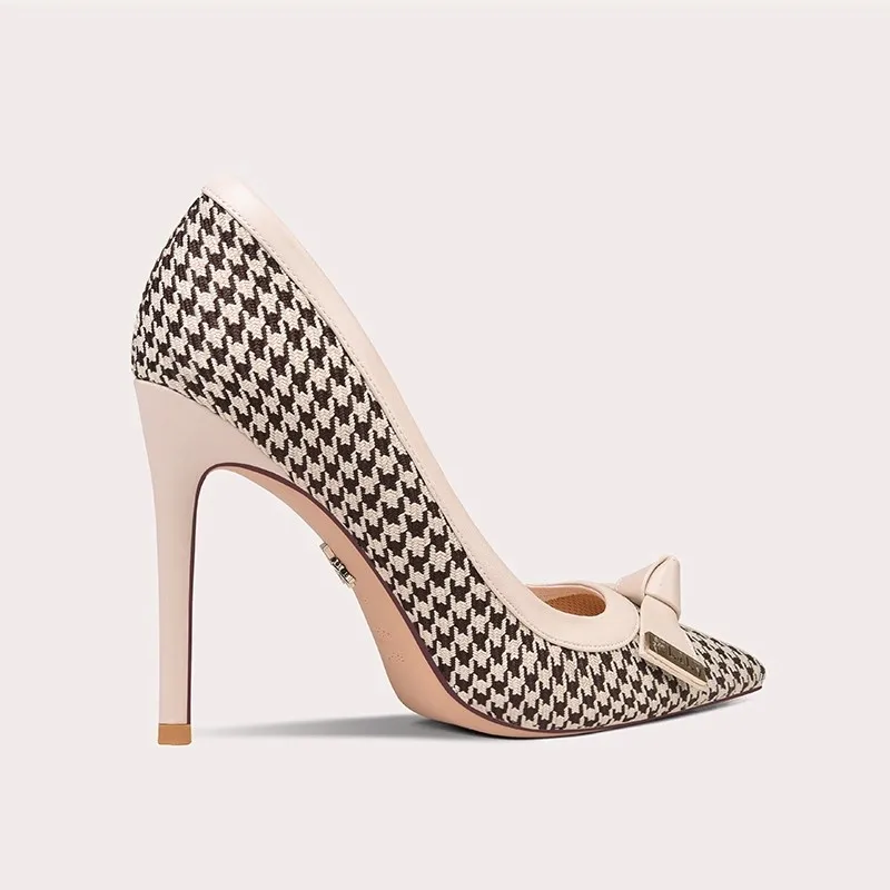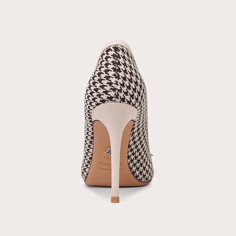 Fine Heel High -heeled Pointed Plaid Patterns Grid Single Shoe Ladies Summer Sexy Heels Casual Design