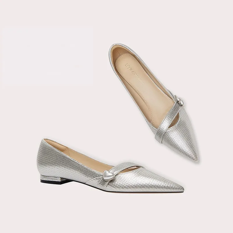 Women's Lightweight Single Summer Flats Pointed Flat Design Shallow Mouth Button Casual Lady Shoes Wholesale Cheaper Price