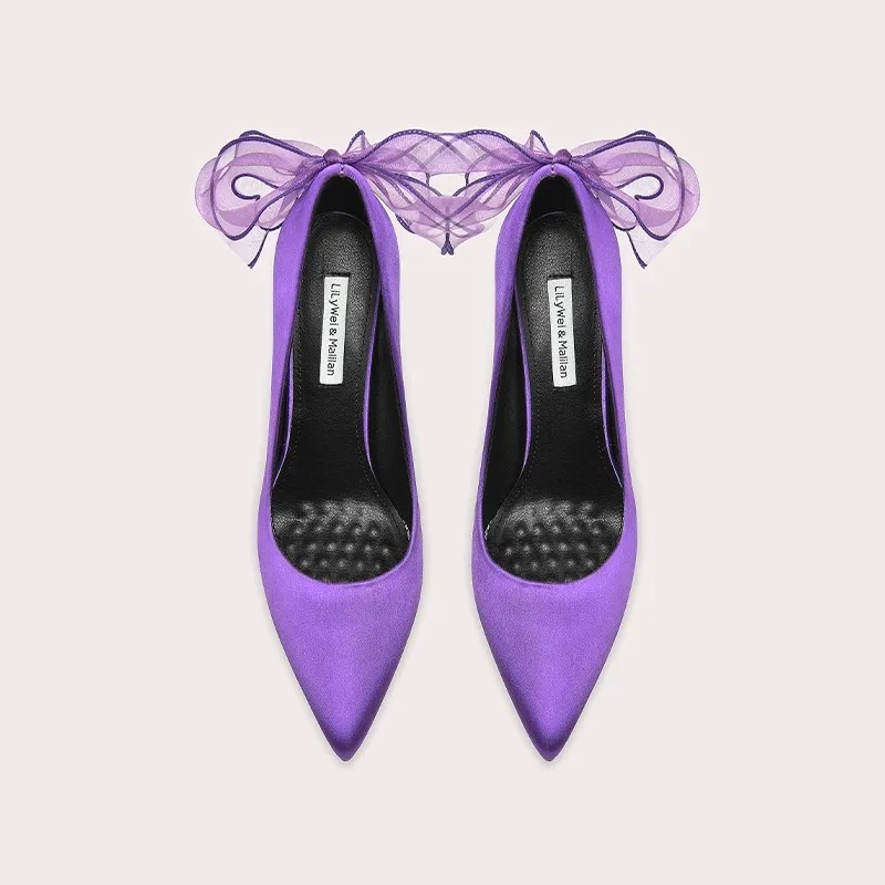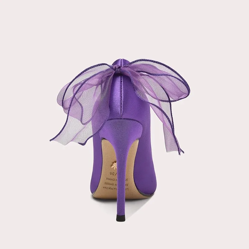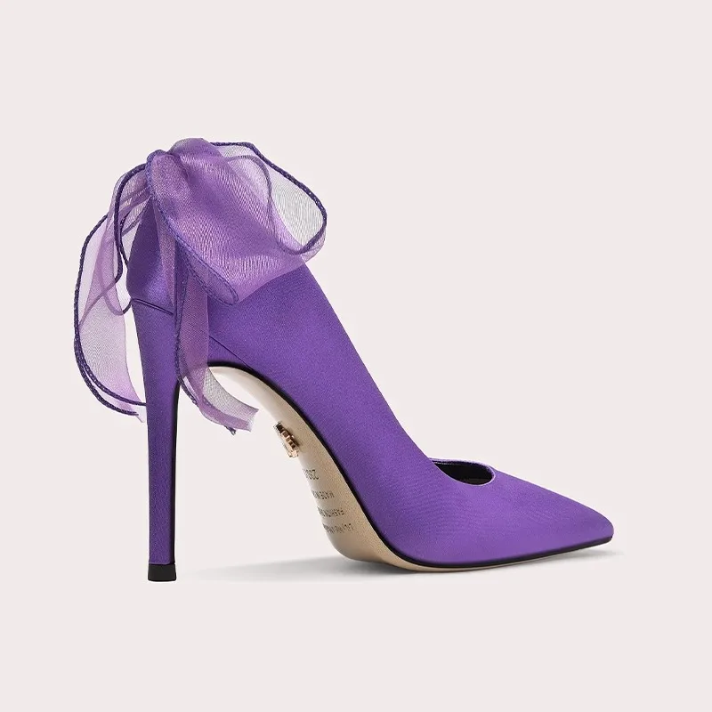 Spring and Summer New Pointy High Heels Ladies Thin Heel Single Shoes Butterfly Wedding Sexy Silk Fashion Elegant Party
