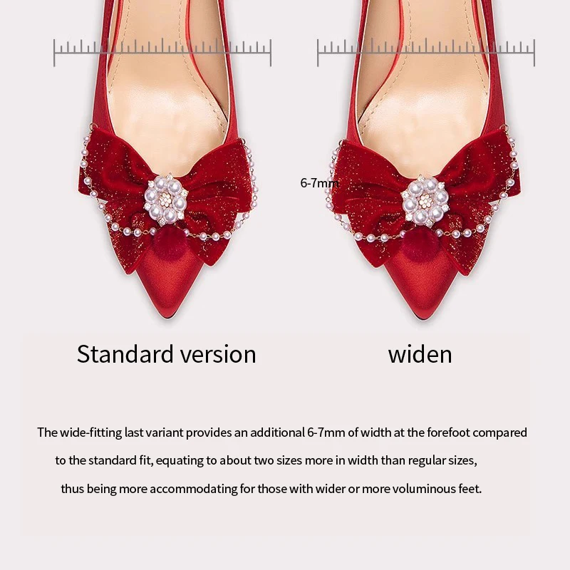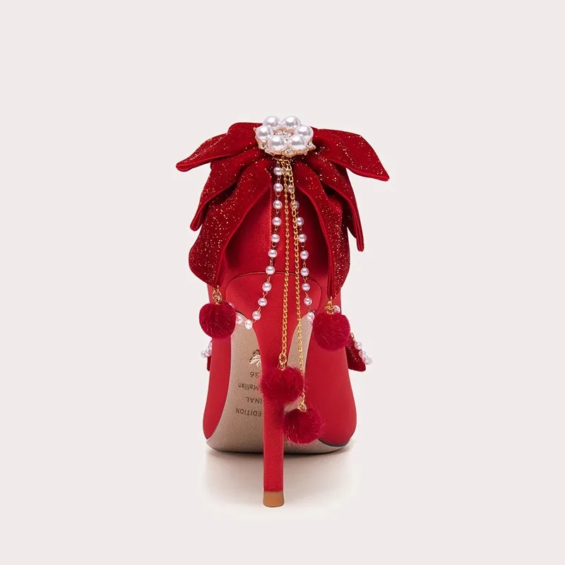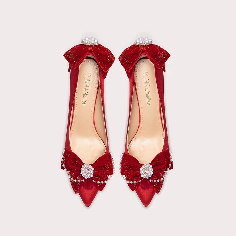 Women Wedding Shoes Fashionable High Heels Delicate Crystal High Heels Red High Heels Bow High Heels
