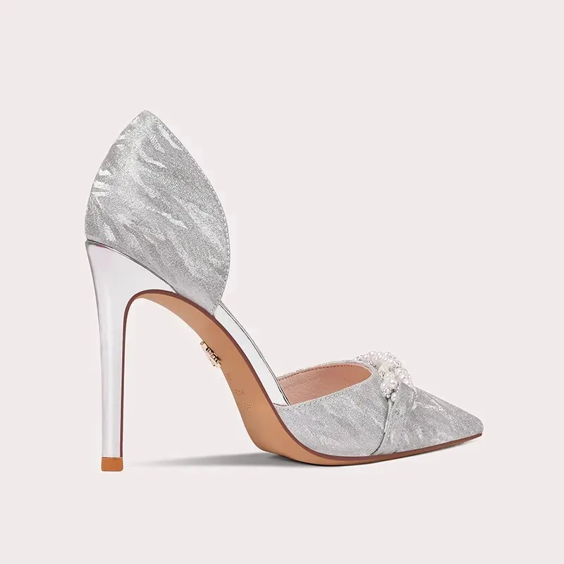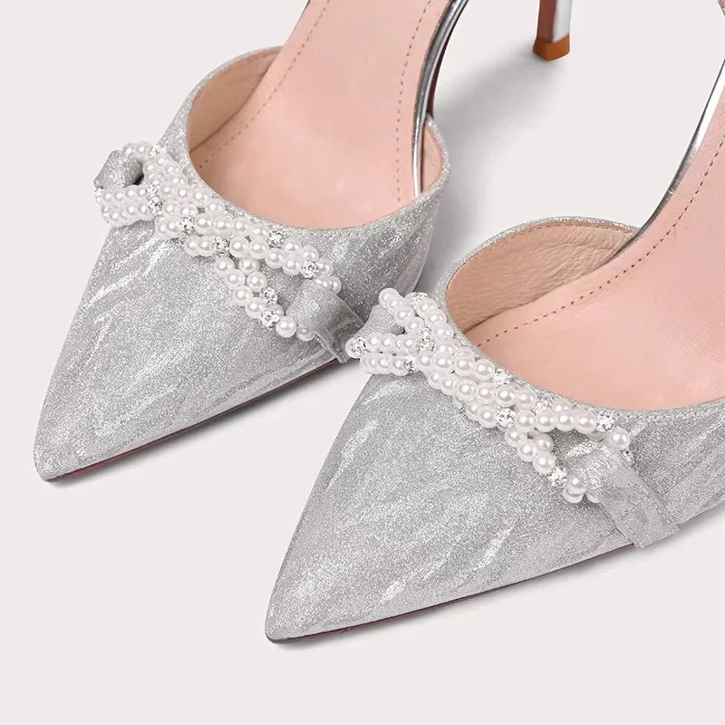 Lily Wei Women Wedding Shoes New Pointed Heel Bridal Casual Shiny Luxury Elegant Bridesmaid Fashion Stiletto