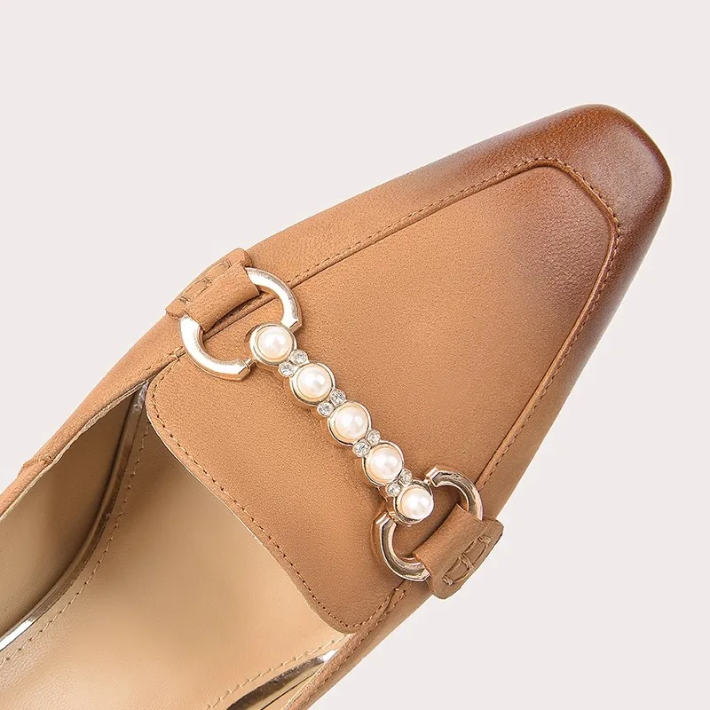 Lily Wei Retro European and American Fashion Heels Head Metal Buckle New Spring Summer Autumn Formal Slip-On Ladies Office