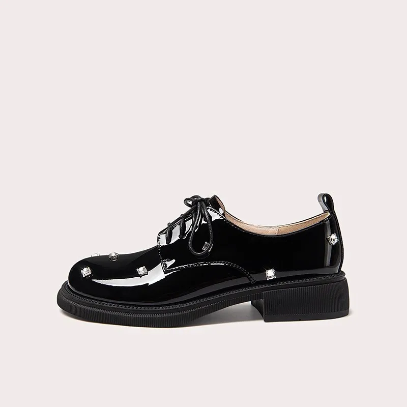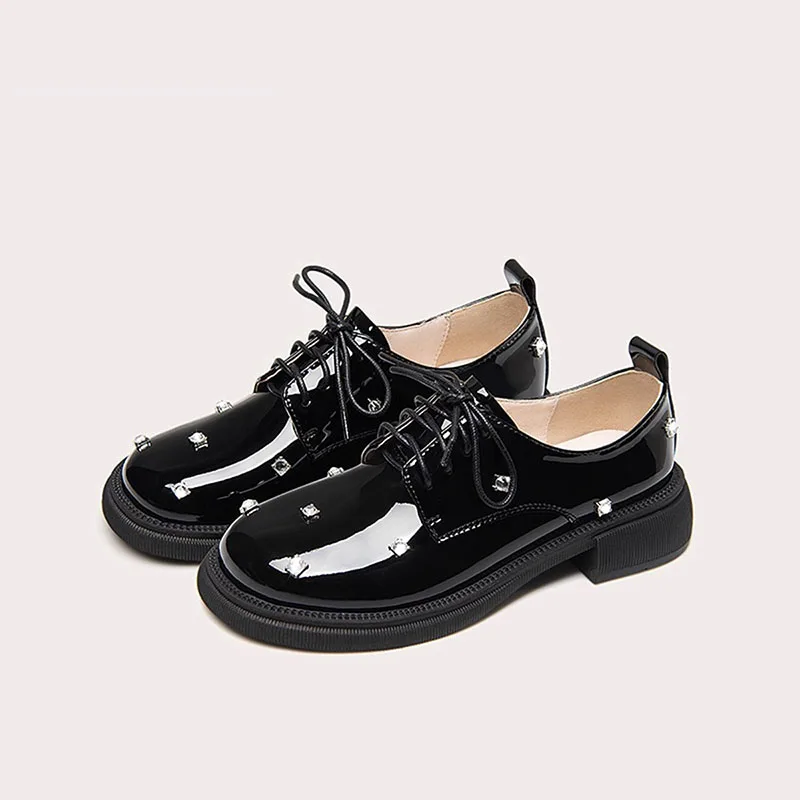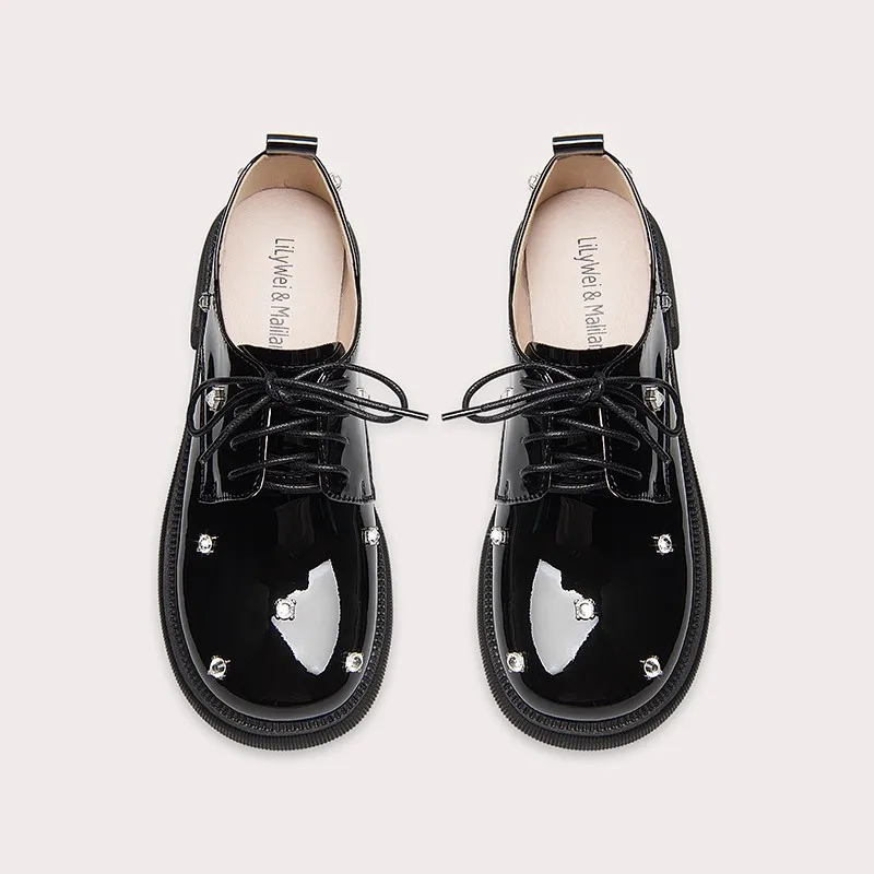 Lily Wei New Girl's Black Leather Shoes Fashion Soles Breathable Princess Women British Style Ankle Loafers Lace-up