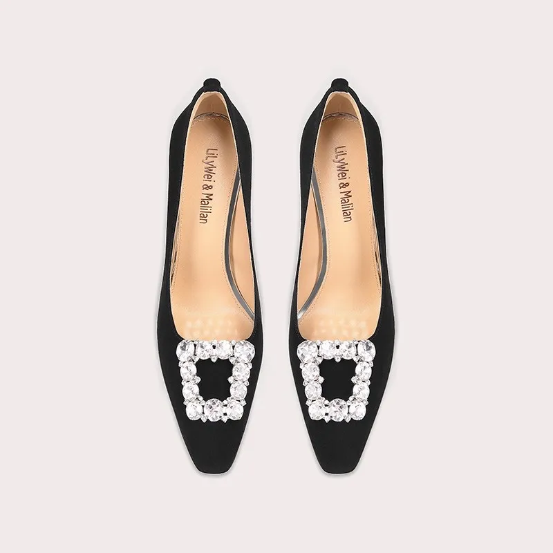 Lily Wei Fashion Glitter Shining Luxury Design Heel Shoes Lady Premium Square High Heels Shoes for Women Bridal Wedding Luxury