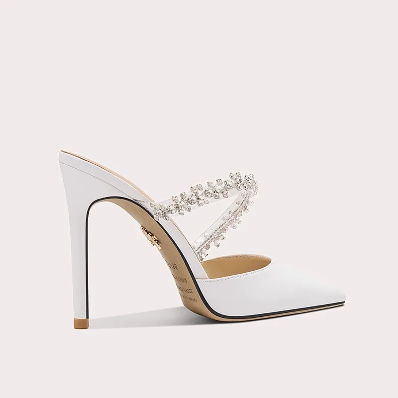 White Wedding Bridal Shoes for Women Sexy Pointed Toe High Heels Rhinestones Summer Slingback Breathable Height Increasing