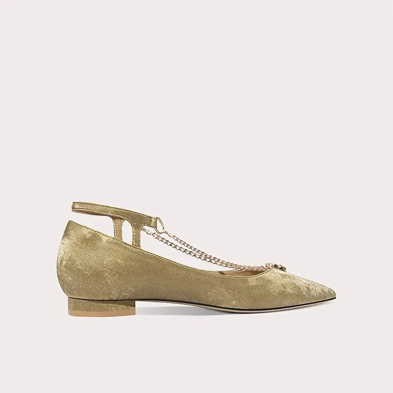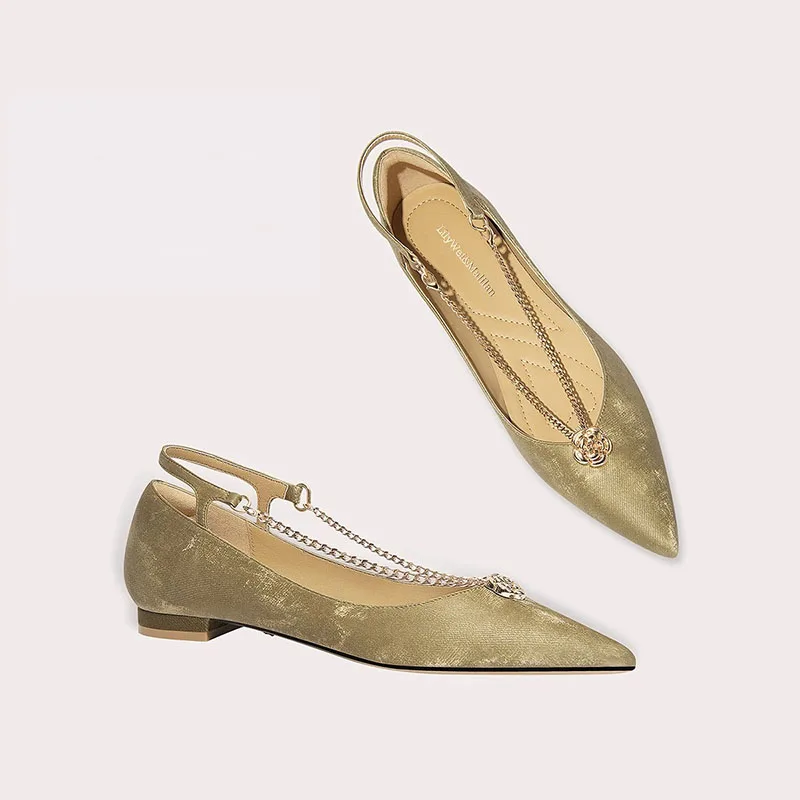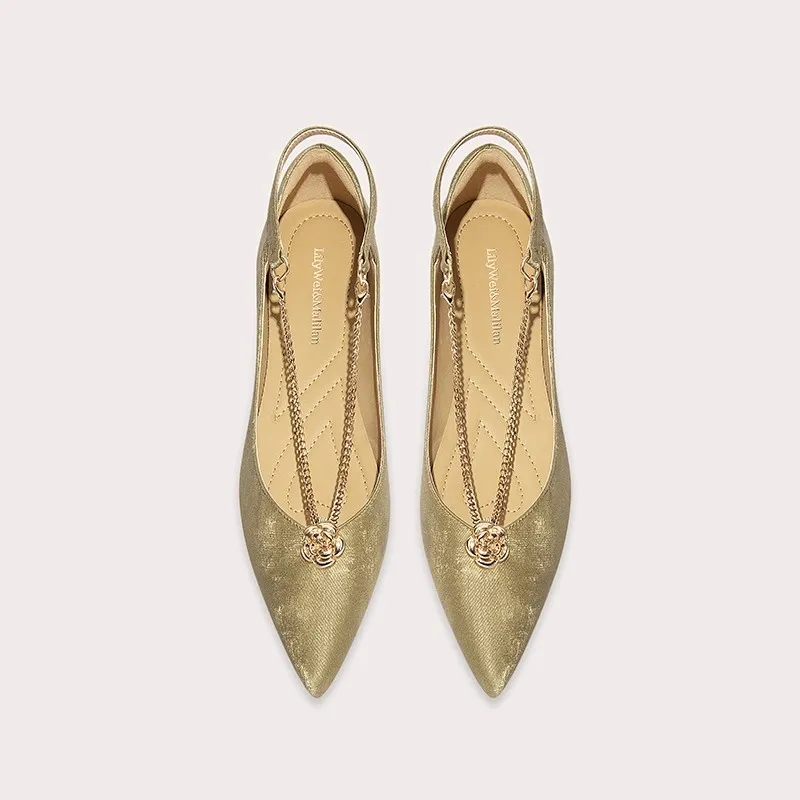 Lily Wei Gilded Color Pointed Toe Flat Heel Slingback Sandals French Style Glitter Crystal Summer Pointed Shoes Party Wedding