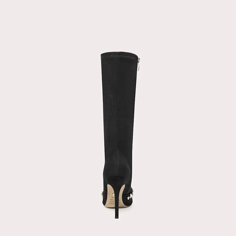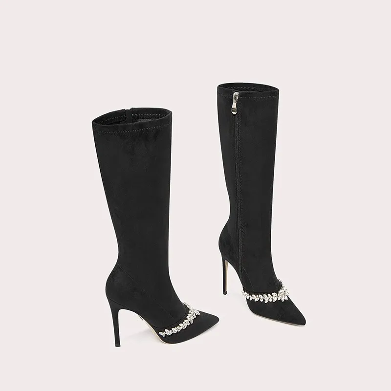 Black Thigh Boots With Chain Pointed Toe High Heel Over the Knee Boots for Women Winter Shoes Ladies Long Boot