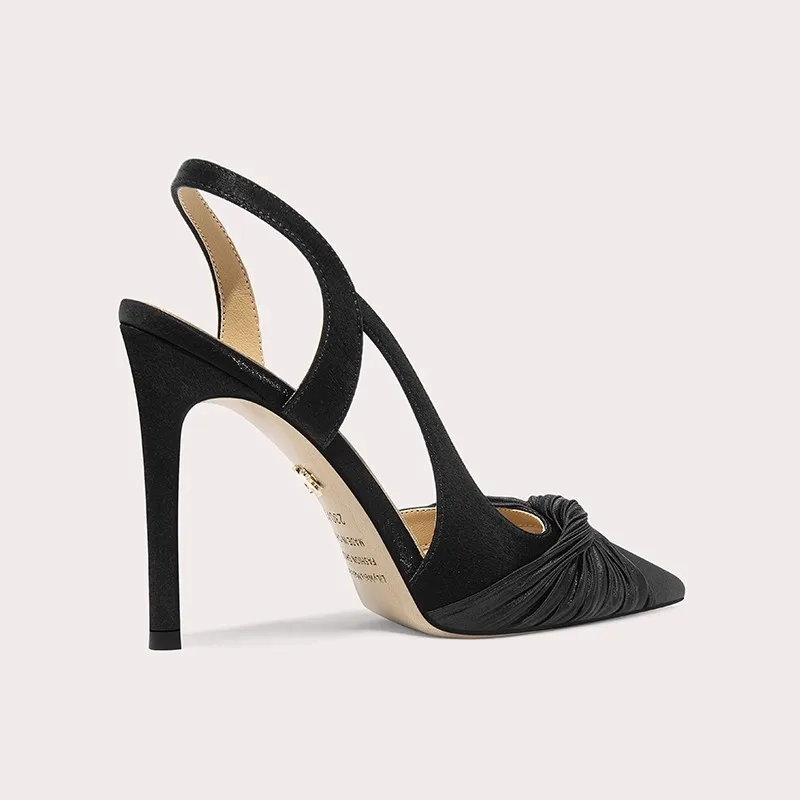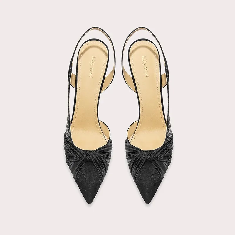 Lily Wei High Quality Ruched Knot Stiletto Pointed Toe Comfortable Lined Heels for Women's Evening Party Shoes