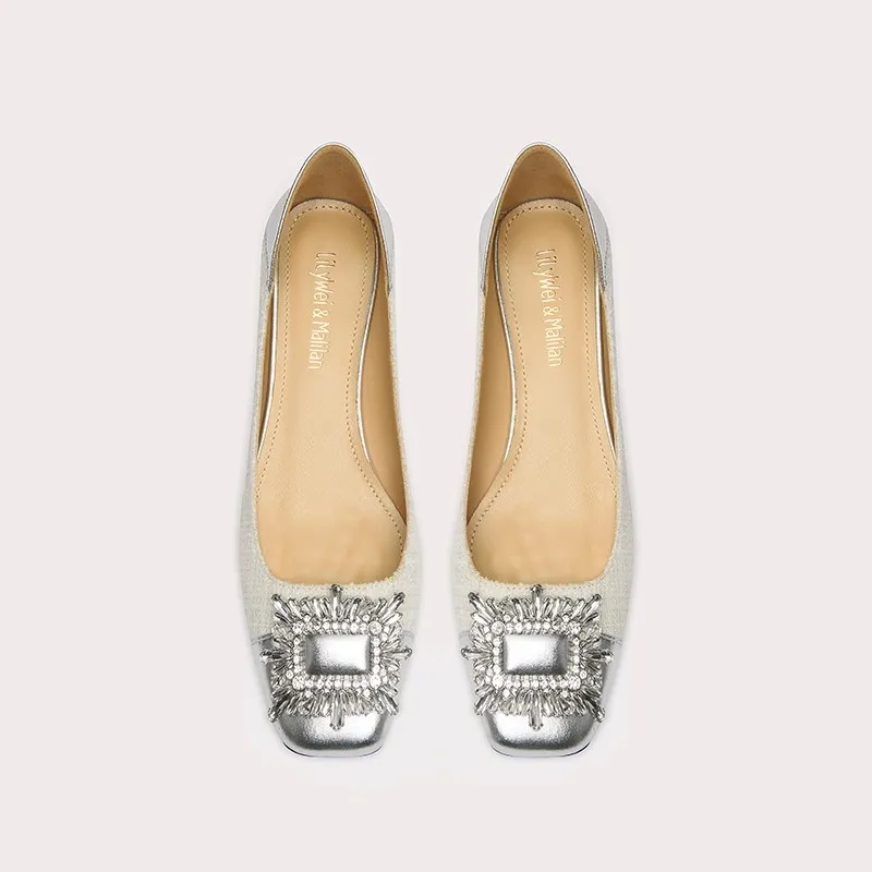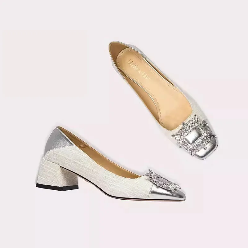 Lily Wei New Square Toe Color Block High Heels Fashionable Rhinestone Thin Heels Single Shoes for Women Spring Autumn
