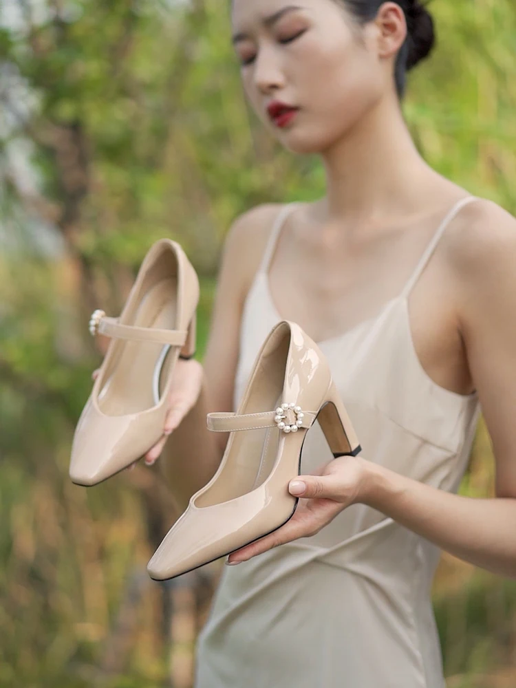 French Marie-Jean Shoes - Thick Heel Not Tiring on the Feet Suitable for Commuting Soft Style High Heel
