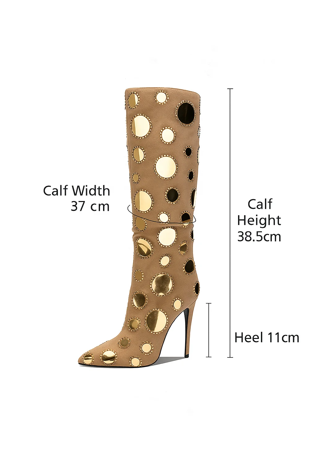 OEM ODM Custom Gold Mirror Studded Suede Knee-High Boots for Women Pointed Toe Stiletto Heel Western Style for Summer Winter