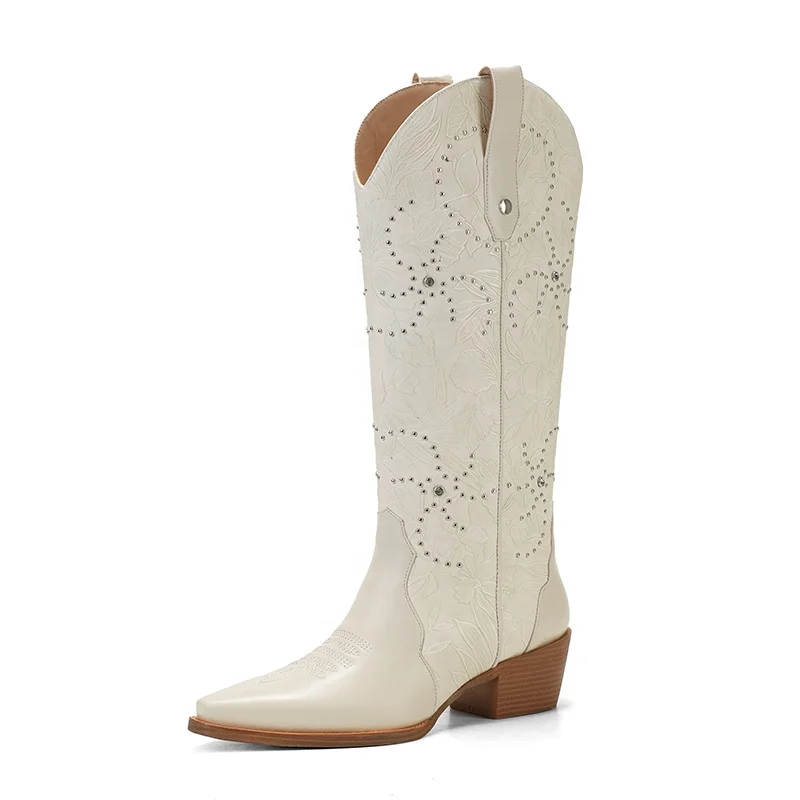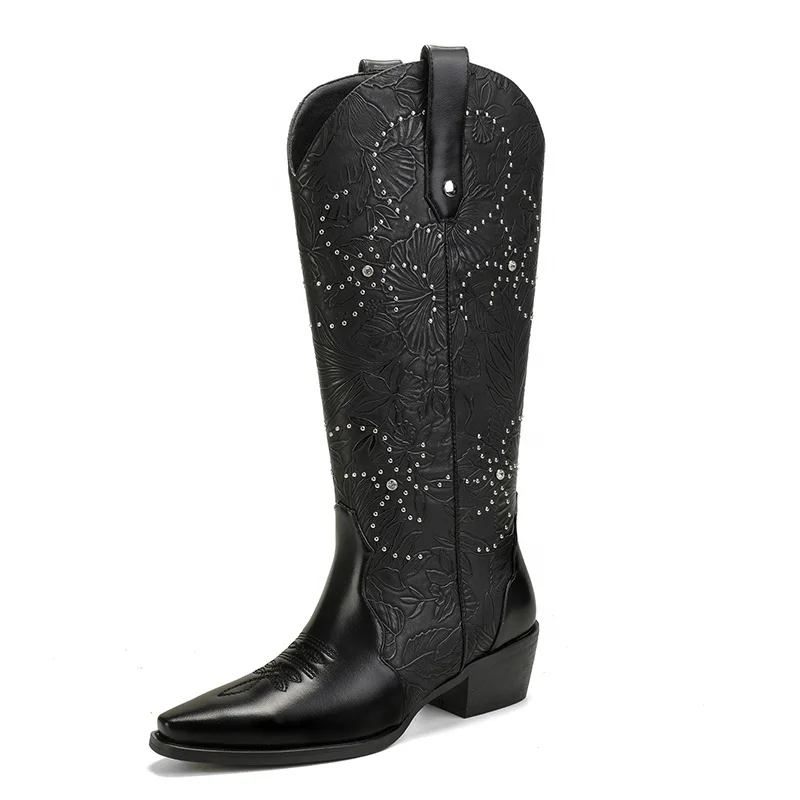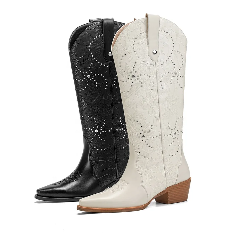Optimal Summer Winter Western Cowboy Boots Rhinestone Embroidery Customizable Knee-High Pointed Toe Block Heel Direct OEM ODM
