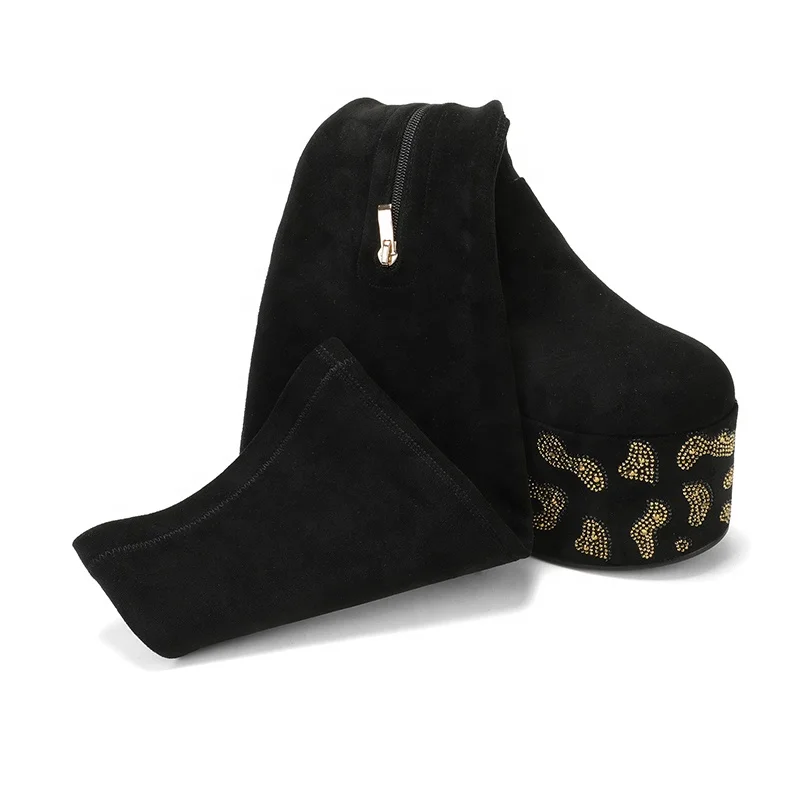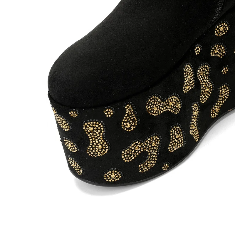 Leporad Custom Black Platform Wedge Thigh High Boots Rhinestones Comfortable Height Increasing Boots for Winter Western Style