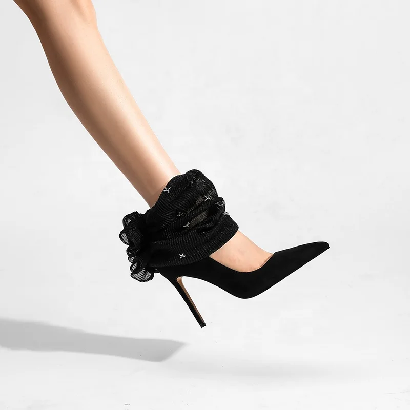 Women's Fashionable Summer Lace Plush Breathable Design Stiletto Heel Pointed Toe Trendy Styles Sold Directly Source Factory