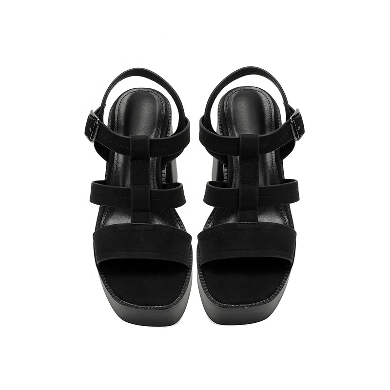 Women's Comfortable Open Toe Block Heel Sandals Autumn Square Buckle Strap Adjustable Ankle Strap Flat Platform Summer Heels