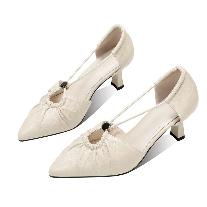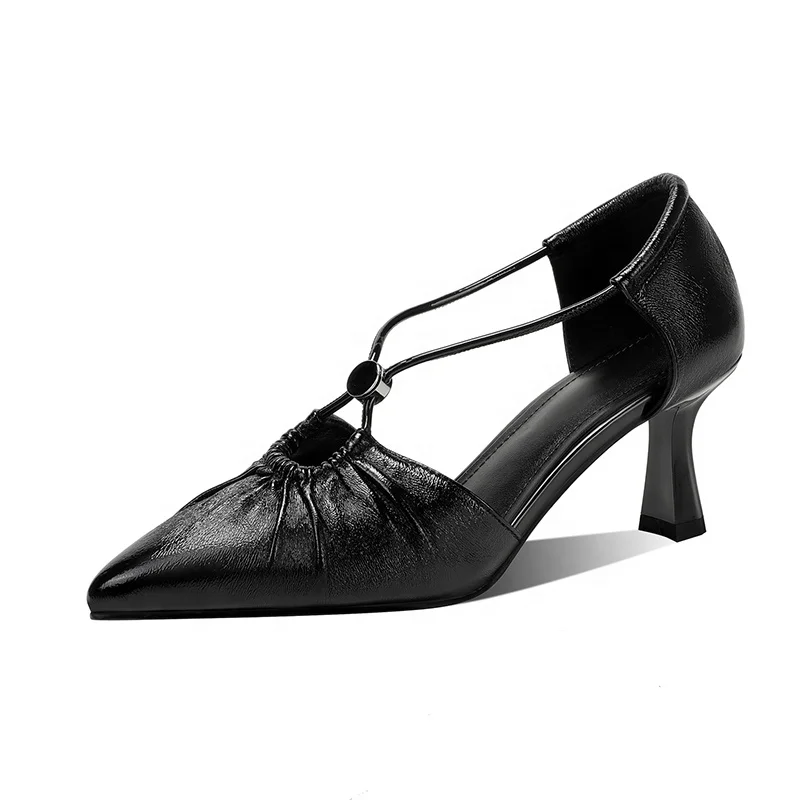 Elegant Ruched Pointed Heels for Ladies with Straps and Decorative Button Fashionable Summer Comfort OEM ODM