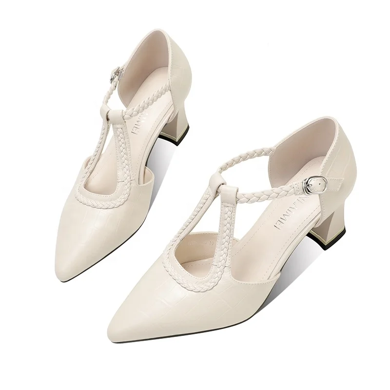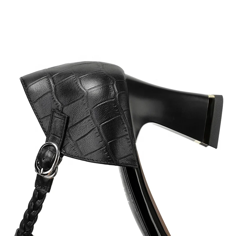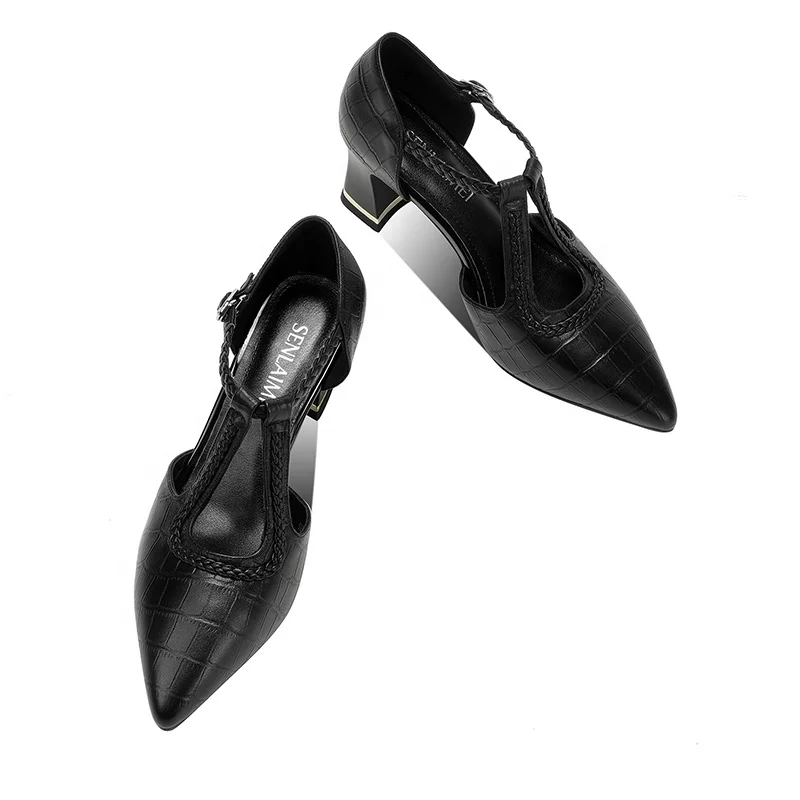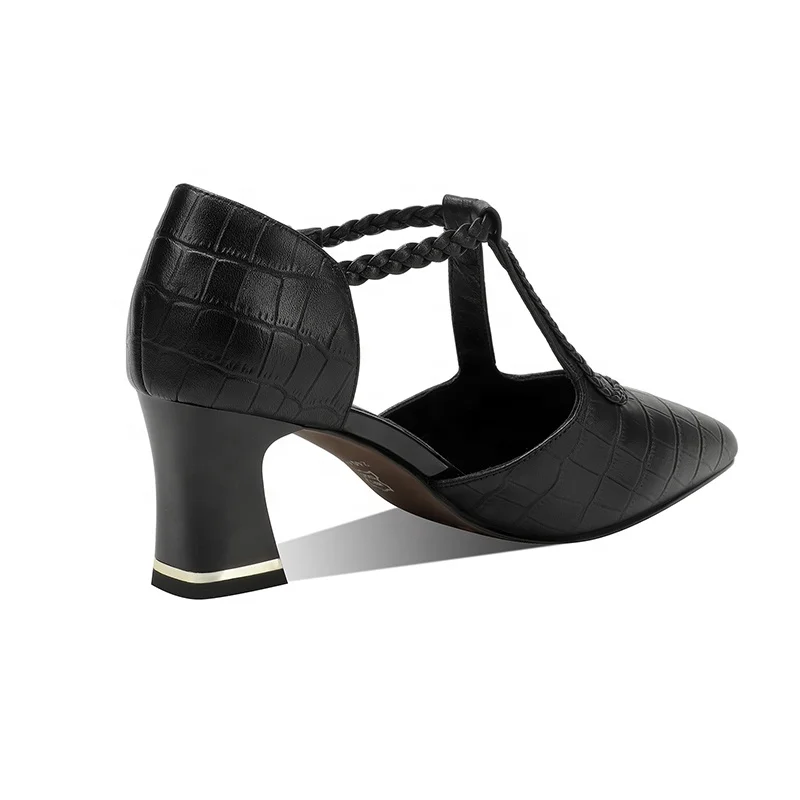 Luxury Women's Croc Embossed T-Strap Pumps with Braided Detail and Square Heel OEM/ODM Customizable Summer Autumn