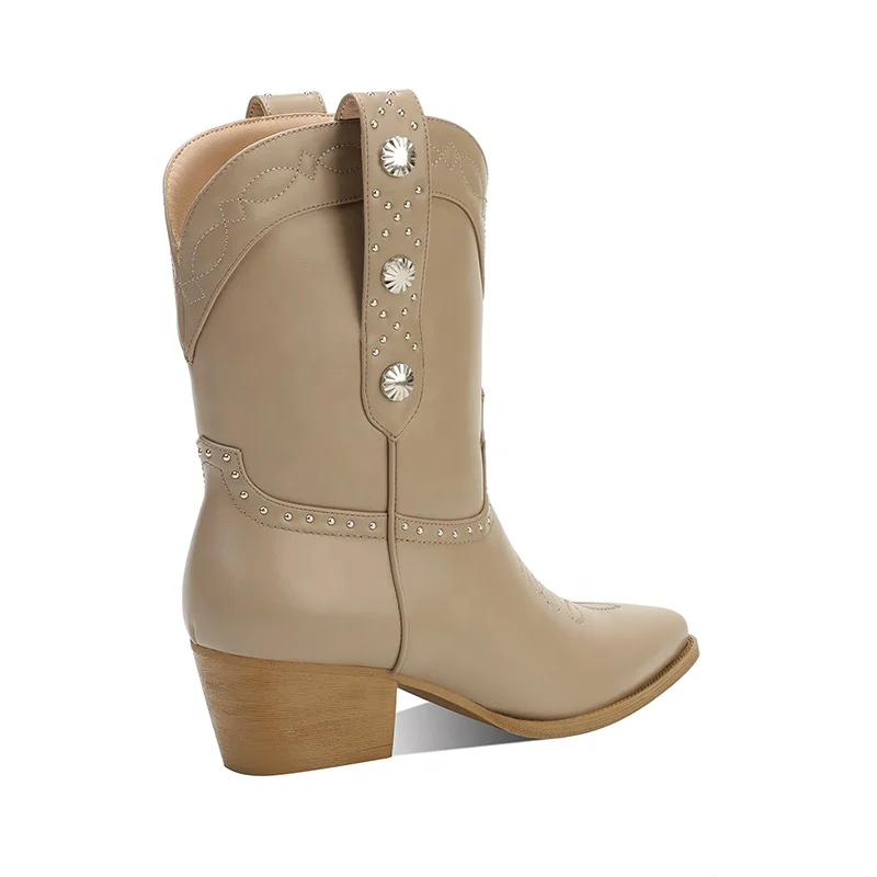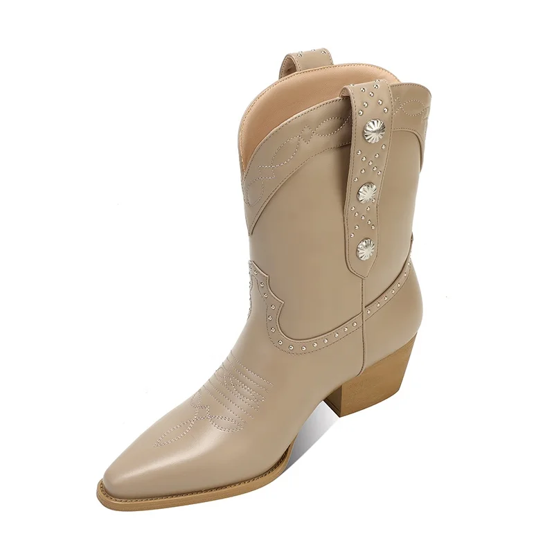Women's Customizable Mid-Calf Pointed Toe Chunky Heel Western Cowboy Boots for Autumn/Winter/Summer Comfort