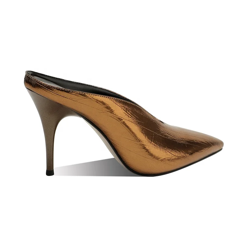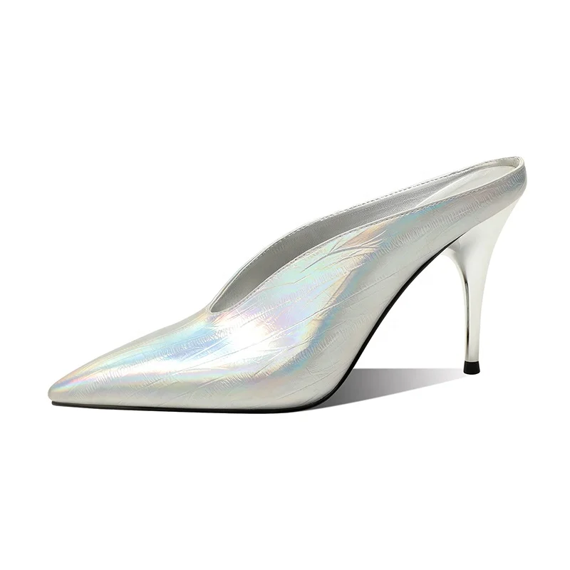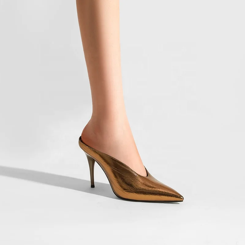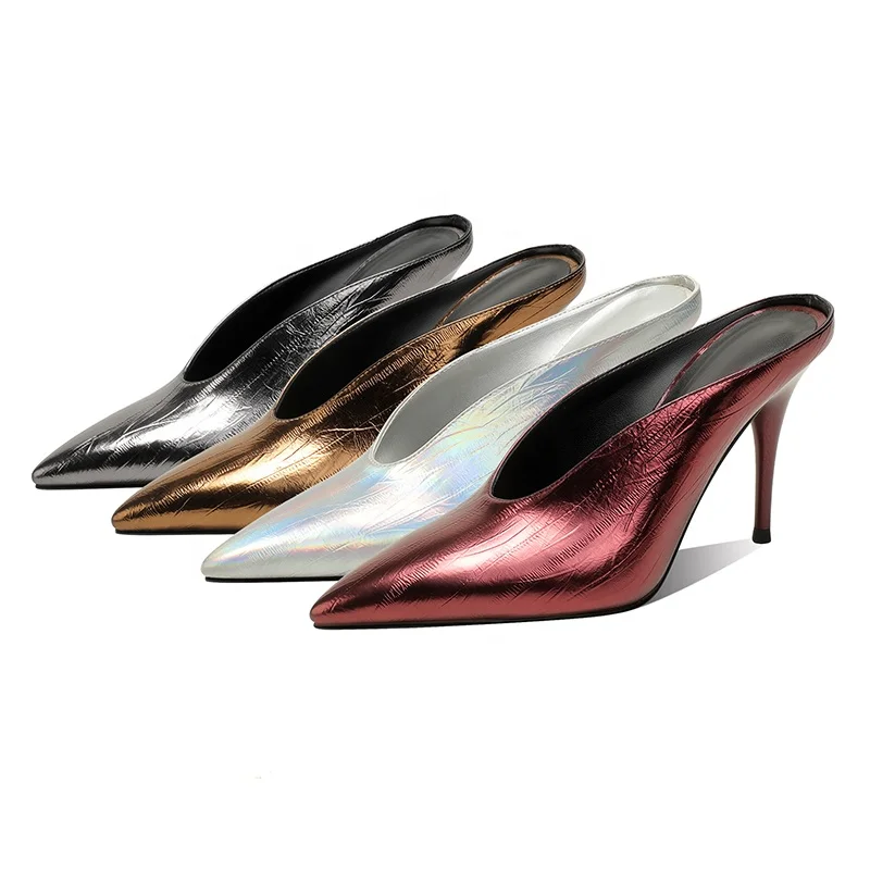 Custom Metallic Sexy Summer Pointed Toe Mule Heels for Women 10cm Stiletto Anti-Slip Slip-On Pumps | OEM ODM Available