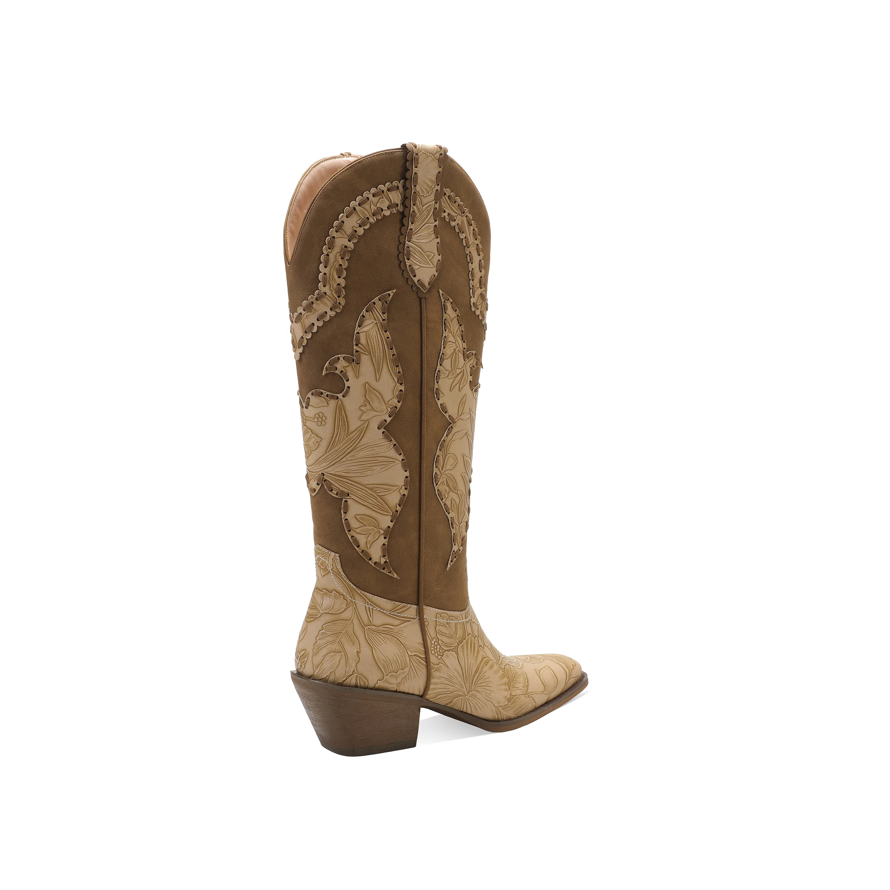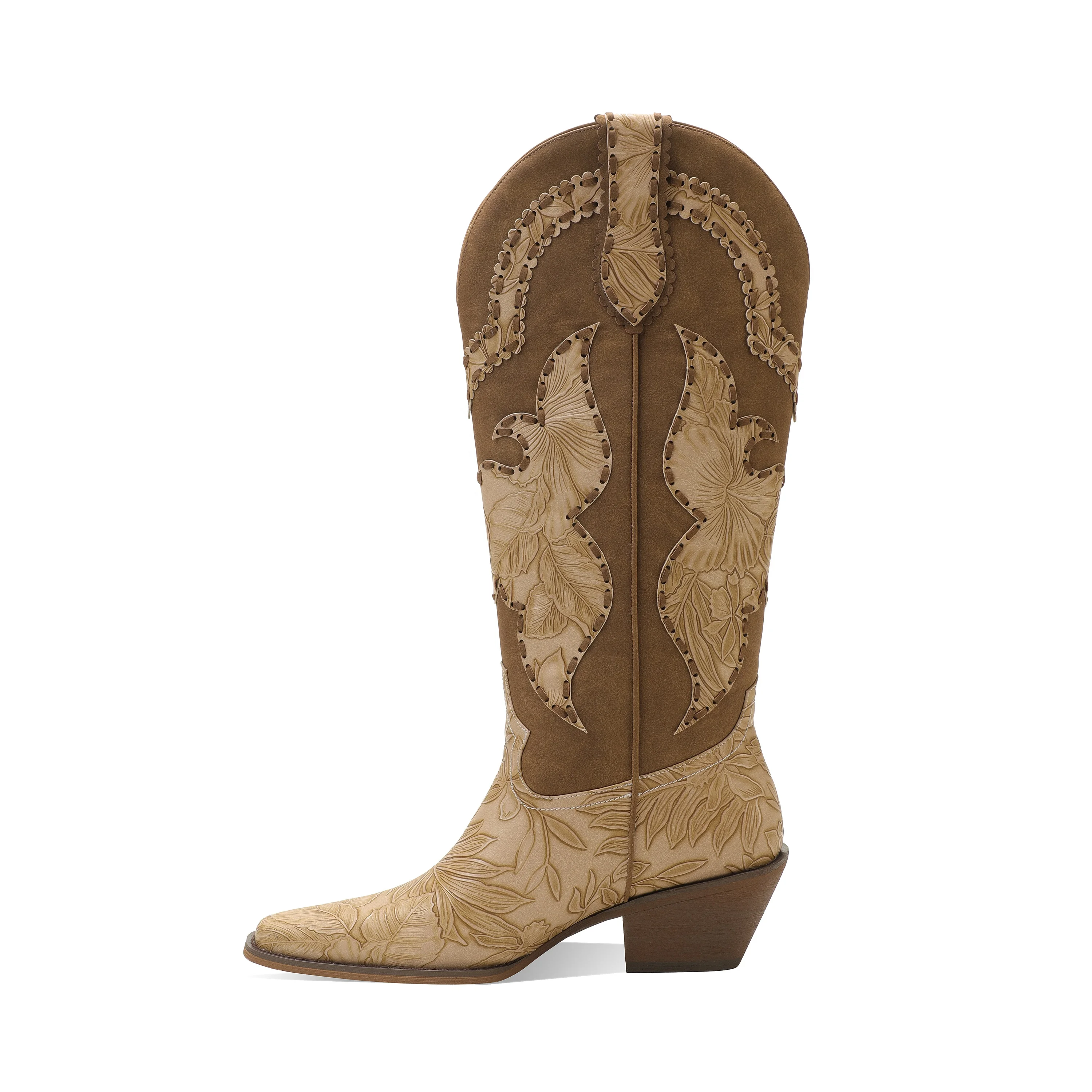 Women's Square Toe Knee-High Cowboy Boots Embroidered Western Style 5cm Heel PU Leather Riding Boots Autumn Height Increasing