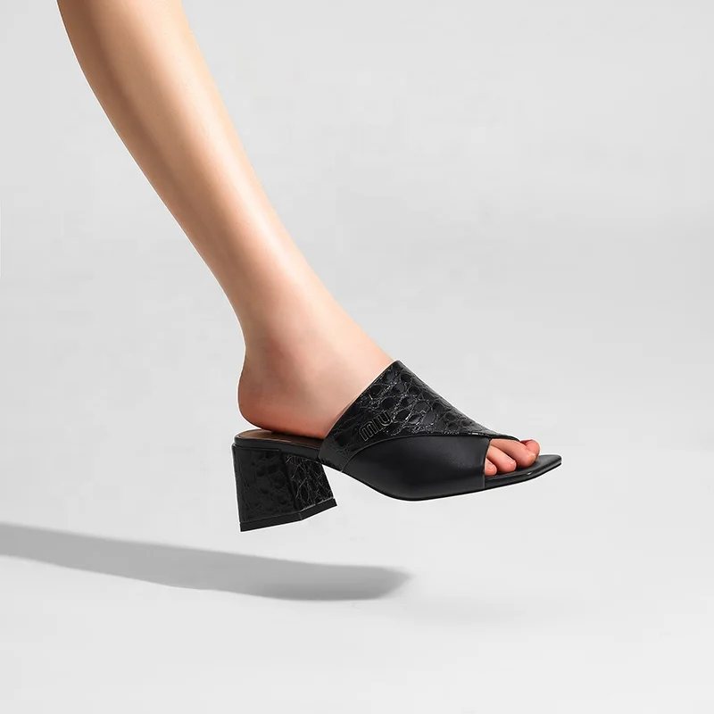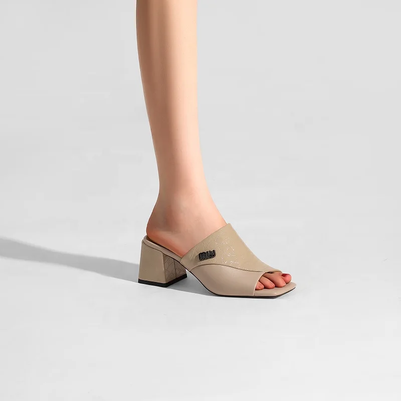 Elegant Women's Square Toe Square Heel Mules Minimalist Slide Sandals Comfortable Outdoor Slippers