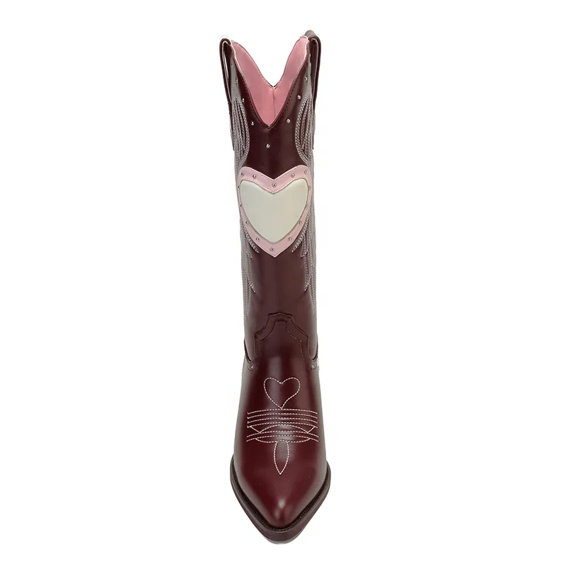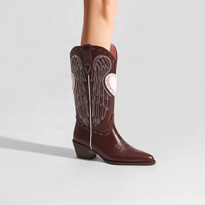 Women's Knee-High Wine Red Western Cowgirl Boots Angel Wing Embroidery Chunky Heel Pointed Toe Lightweight Summer Comfort