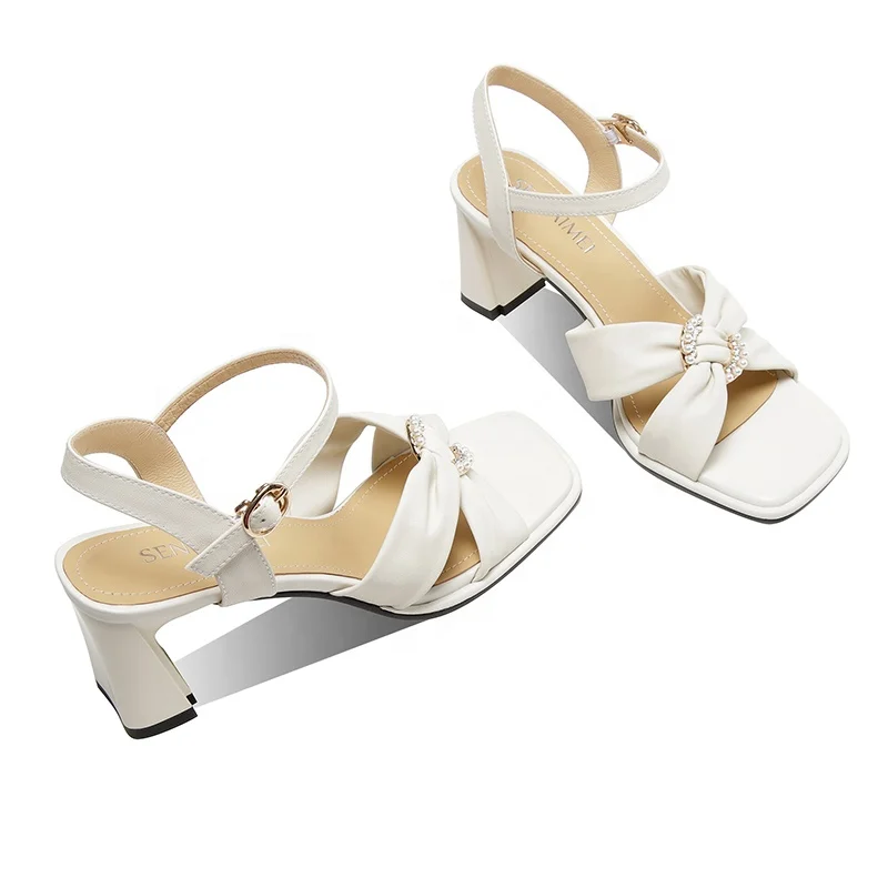 Moncheer OEM Women's Square Toe Rhinestones Open Toe Block Heel Summer Ankle Strap Heeled Sandals
