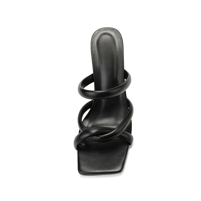 Moncheer Summer Club Barefoot Slip-On Ball Heel Mules with Square Toe and Twisted Straps Comfortable Outdoor Slippers