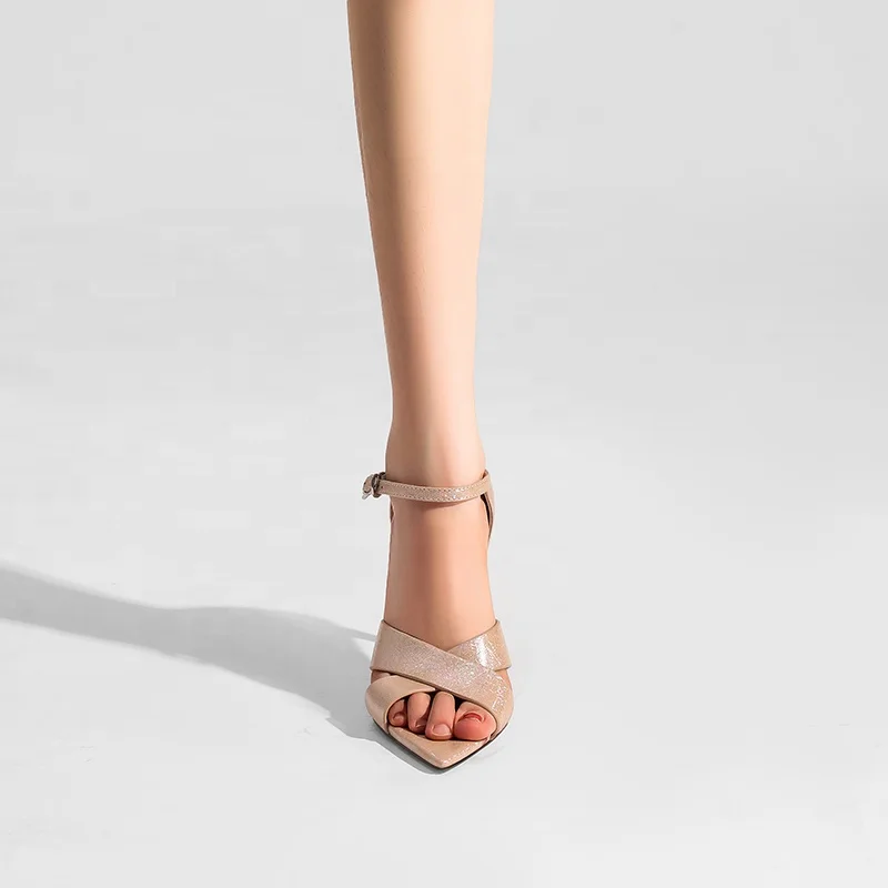 Comfortable Women's Open Toe Pointed Cross-Strap Stiletto Heels Ankle Strap Elegant Glitter Anti-Slip Dress Sandals Dance Shoes