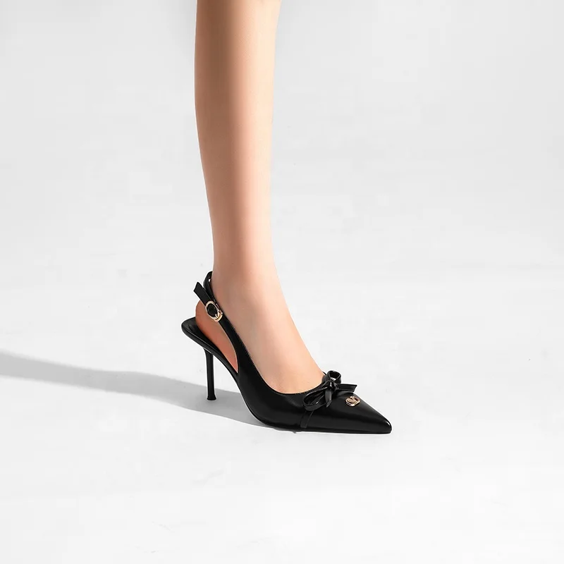 Moncheer Elegant Pointed Toe Slingback Heels with Bow & Logo Charm 8cm Stiletto Pumps for Women
