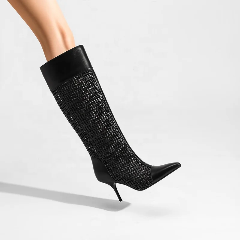 Women's Fashionable Summer Lace Plush Breathable Design Stiletto Heel Pointed Toe Trendy Styles Sold Directly Source Factory