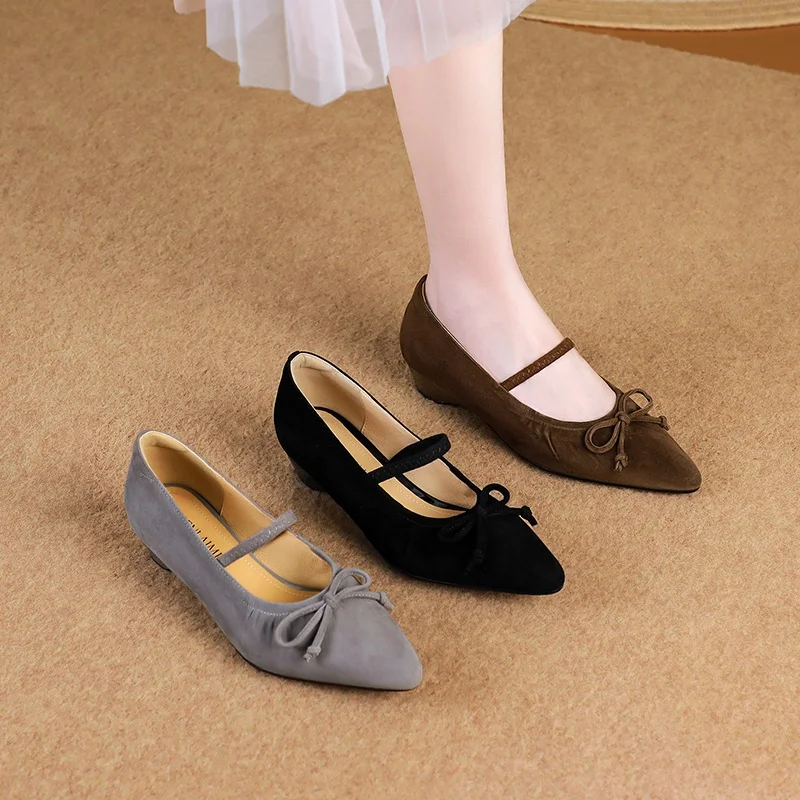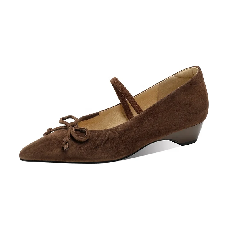 Moncheer Custom Women's Suede Mary Jane Wedge Pumps Low Heel Pointed Toe with Bow Fashionable Comfortable Breathable for Summer
