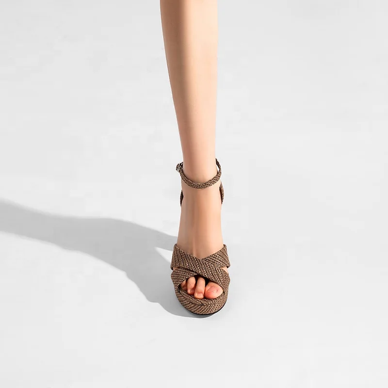 Moncheer Custom Women's Woven Block Heel Platform Sandals Ankle Strap Sexy Anti-Slip for Summer Winter Dress & Casual