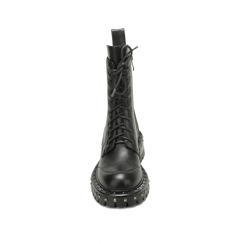 Moncheer Women's Retro Fashion Ankle Boots with Square Heel & Lace-Up Height Increasing Formal Western Style with Side Zipper