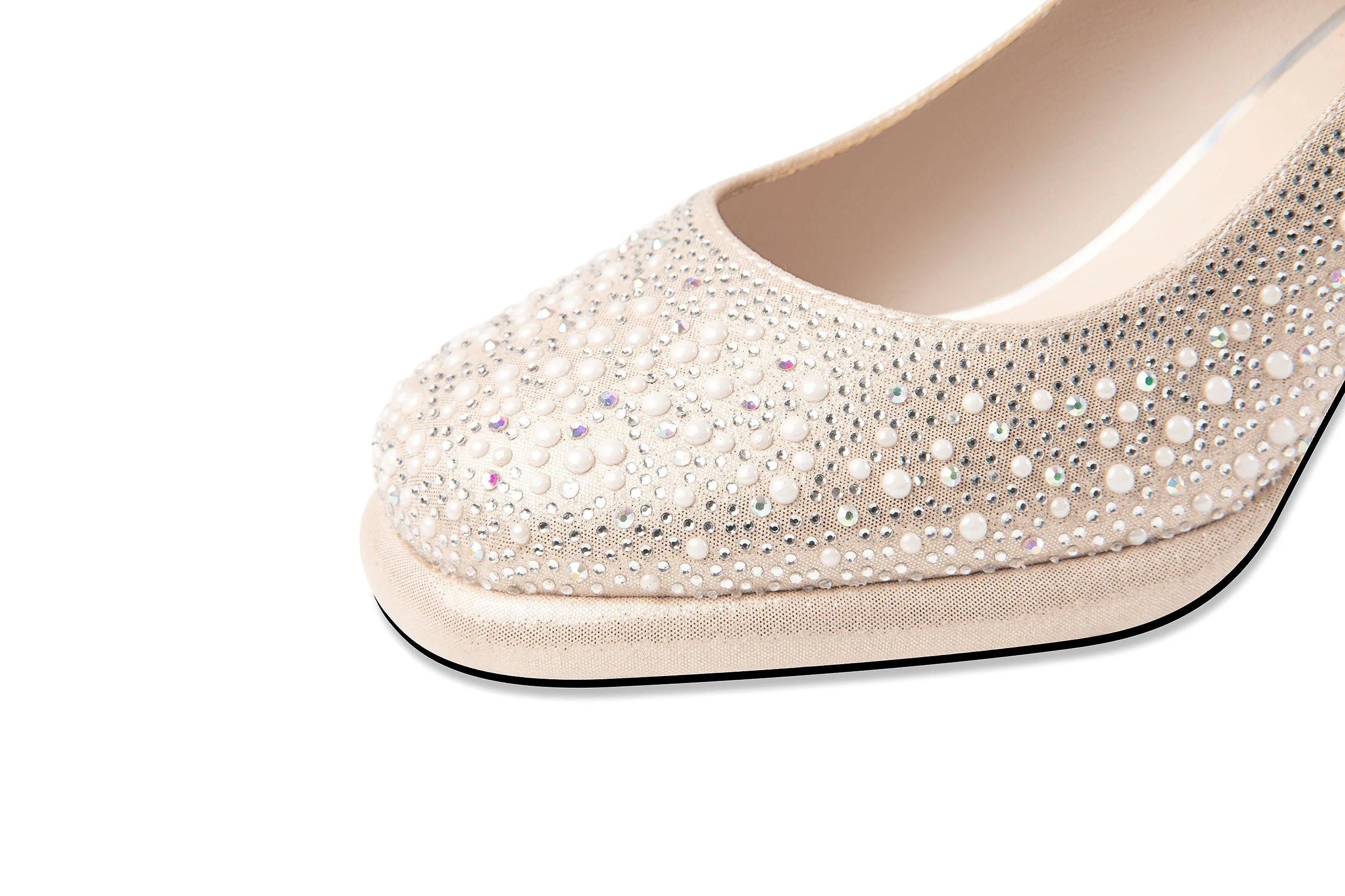 Moncheer Women's Pearl Rhinestone Mary Jane Pumps Square Toe Block Heel Dress Shoes with Flower Buckle Strap